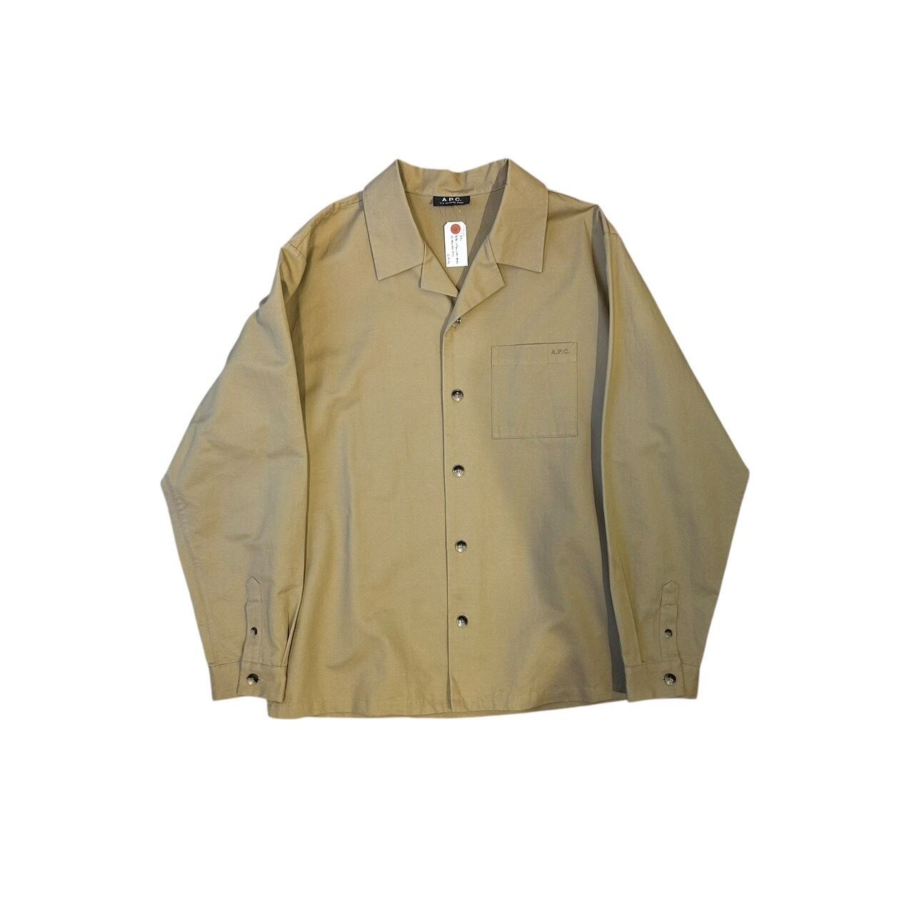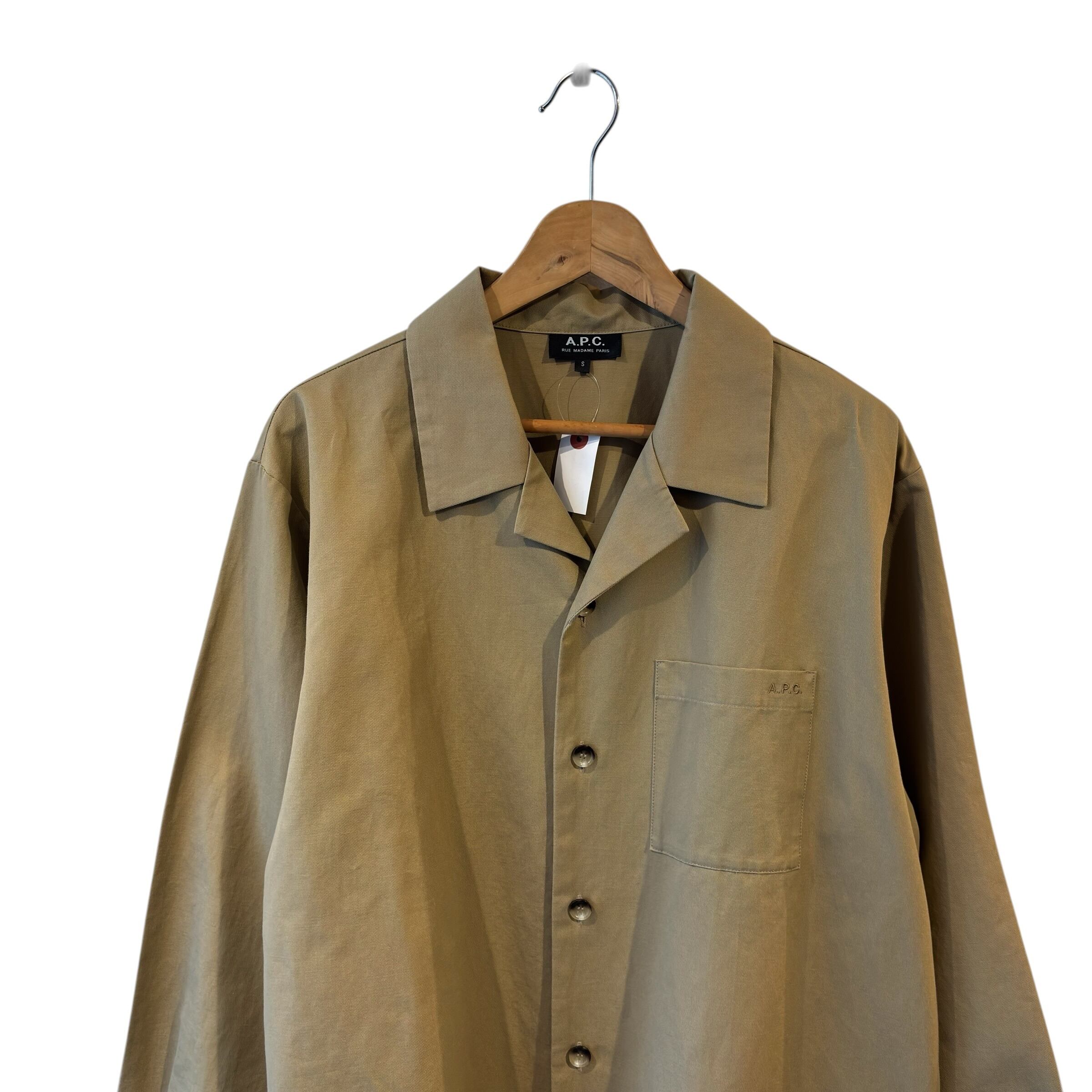 “A.P.C.” Beige cotton/linen design L/S open collar shirt