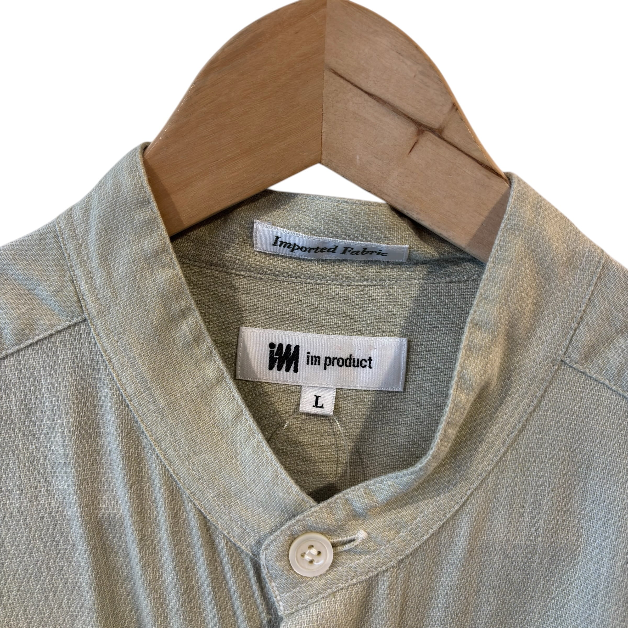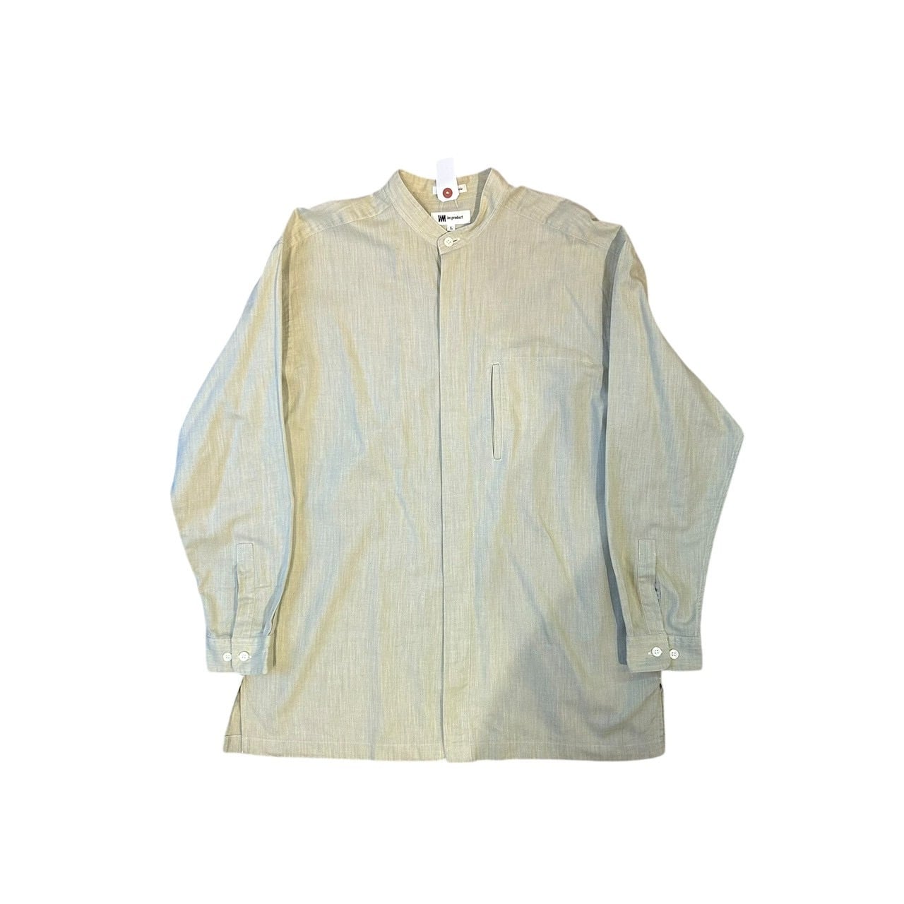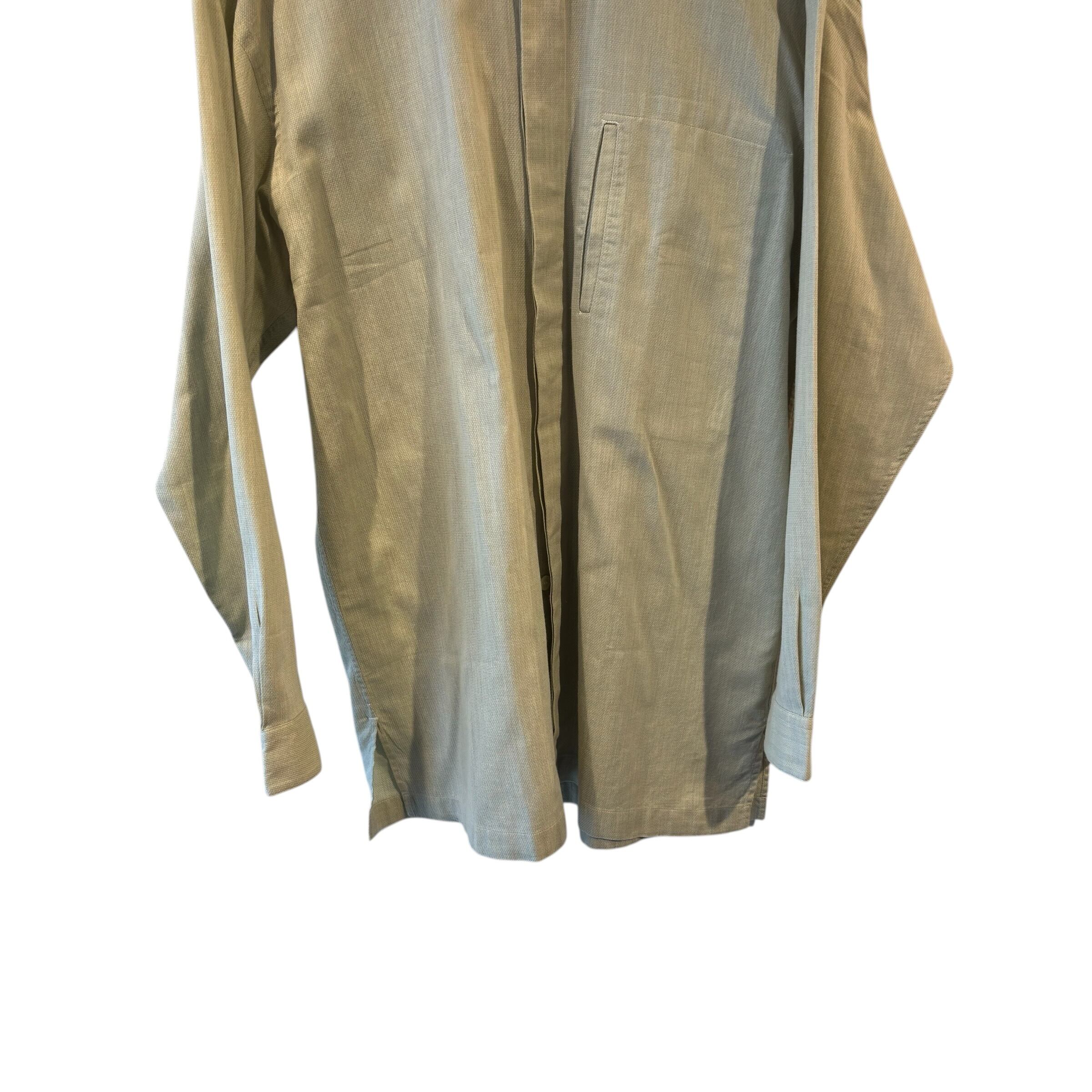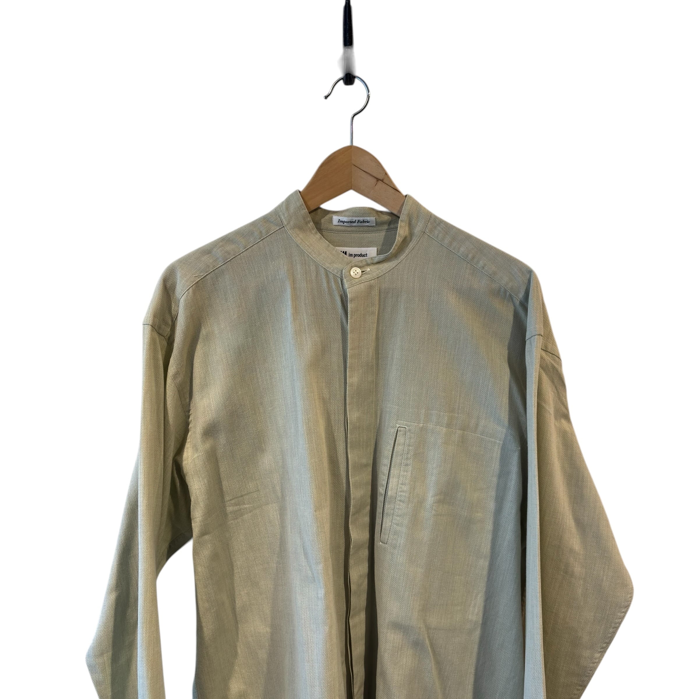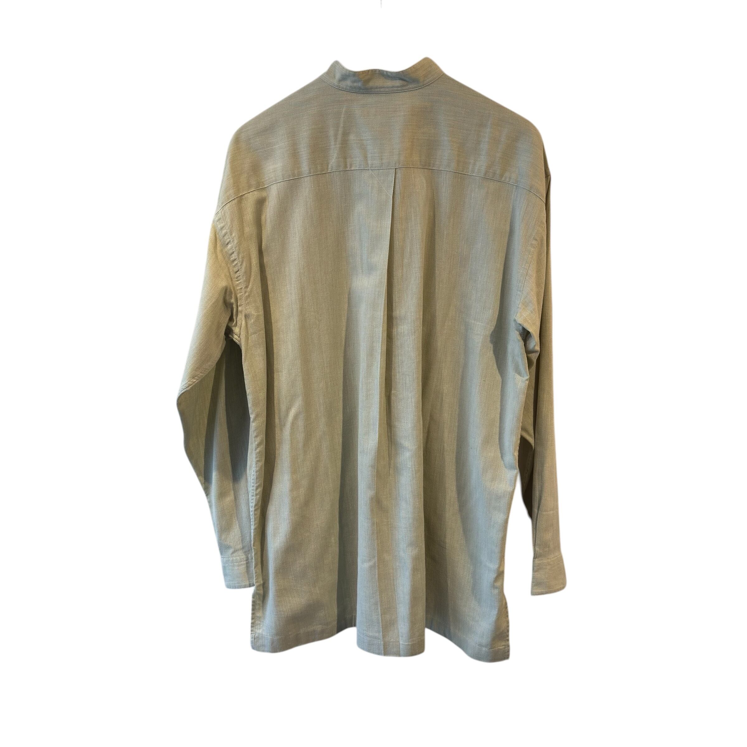 “ISSEY MIYAKE” Light green L/S cotton band collar shirt