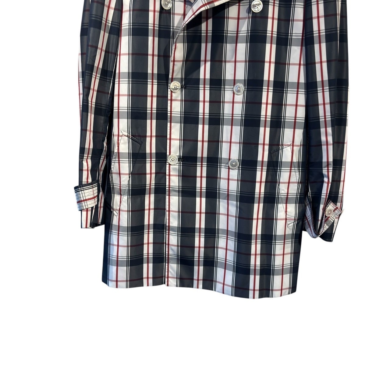 “BLACK FLEECE” Check pattern poly design trench coat