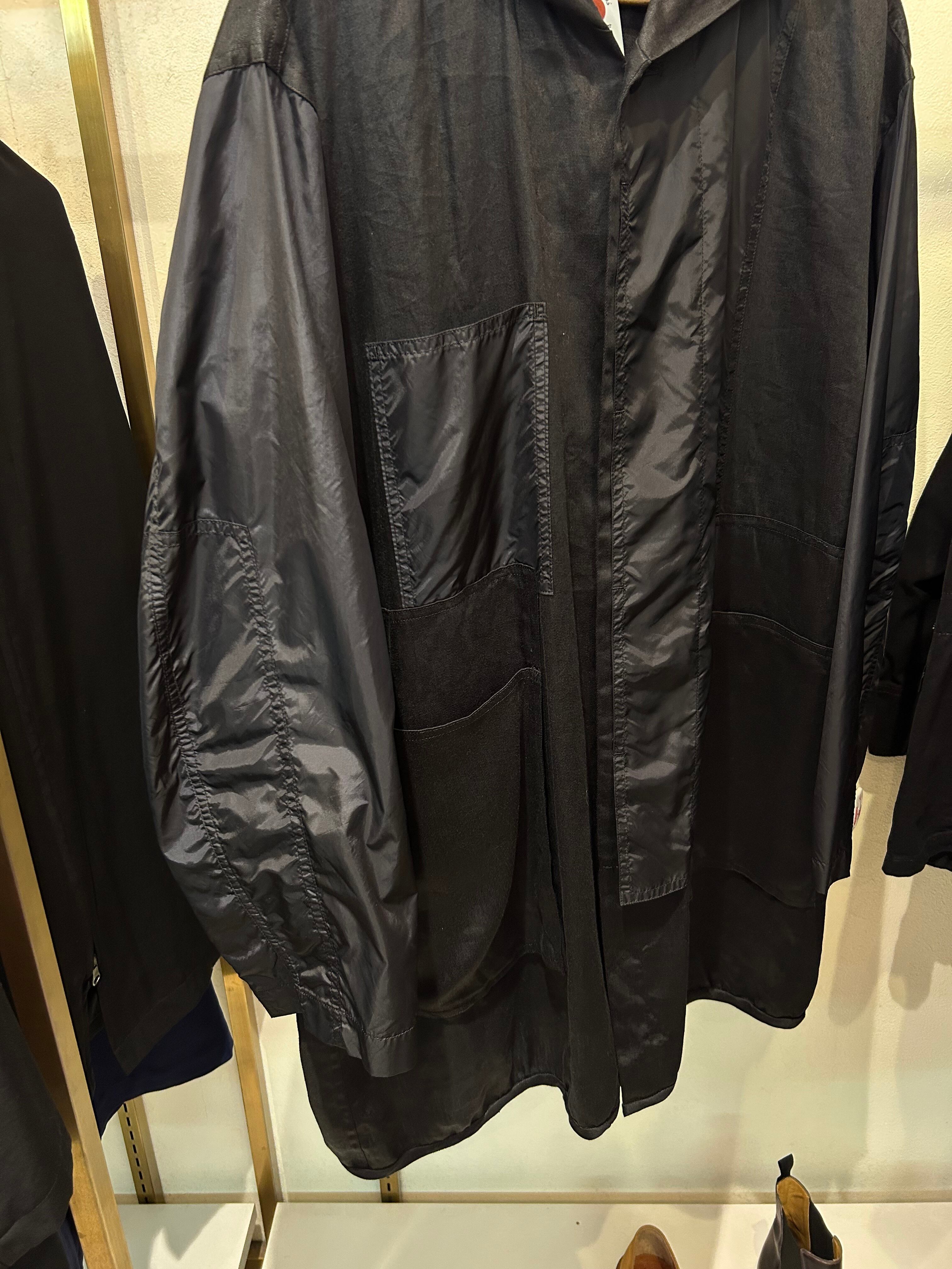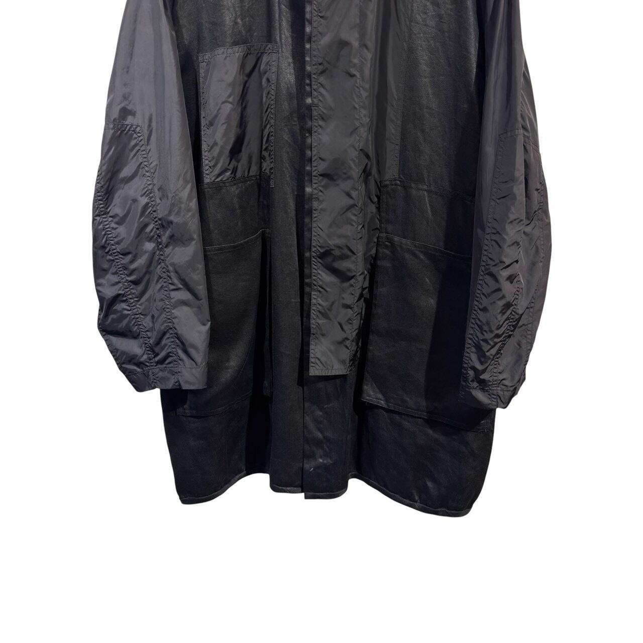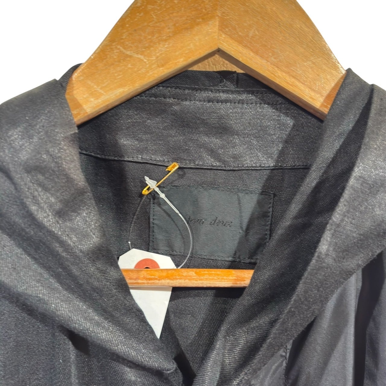 “pour deux” Black linen/nylon switch fly front hooded coat
