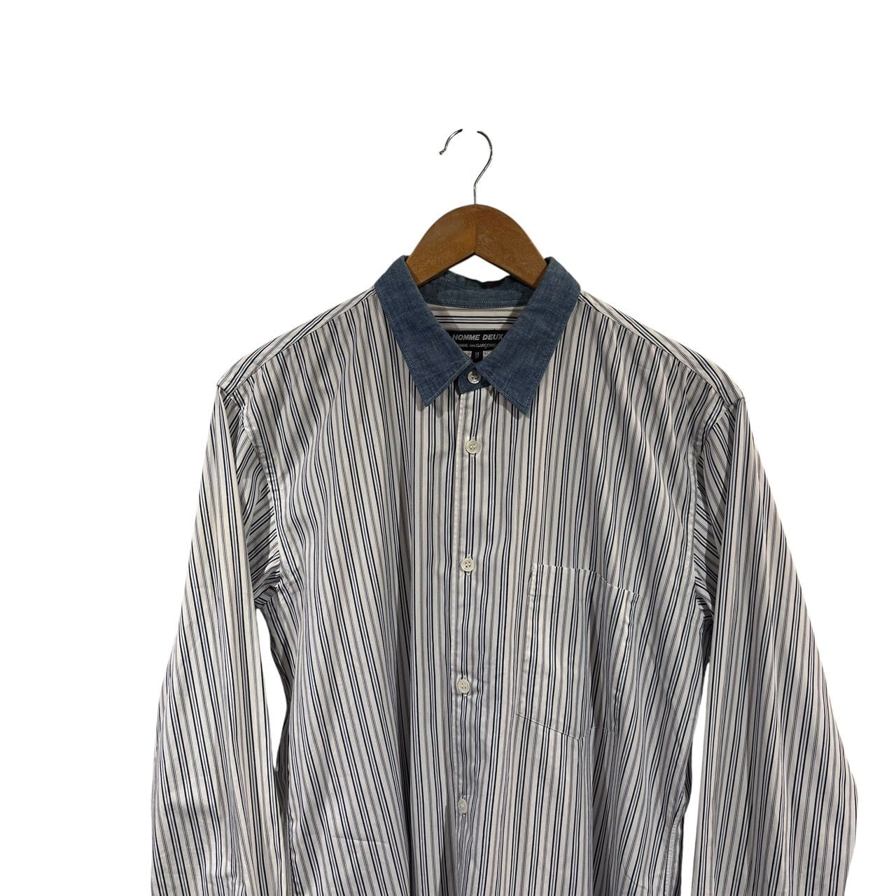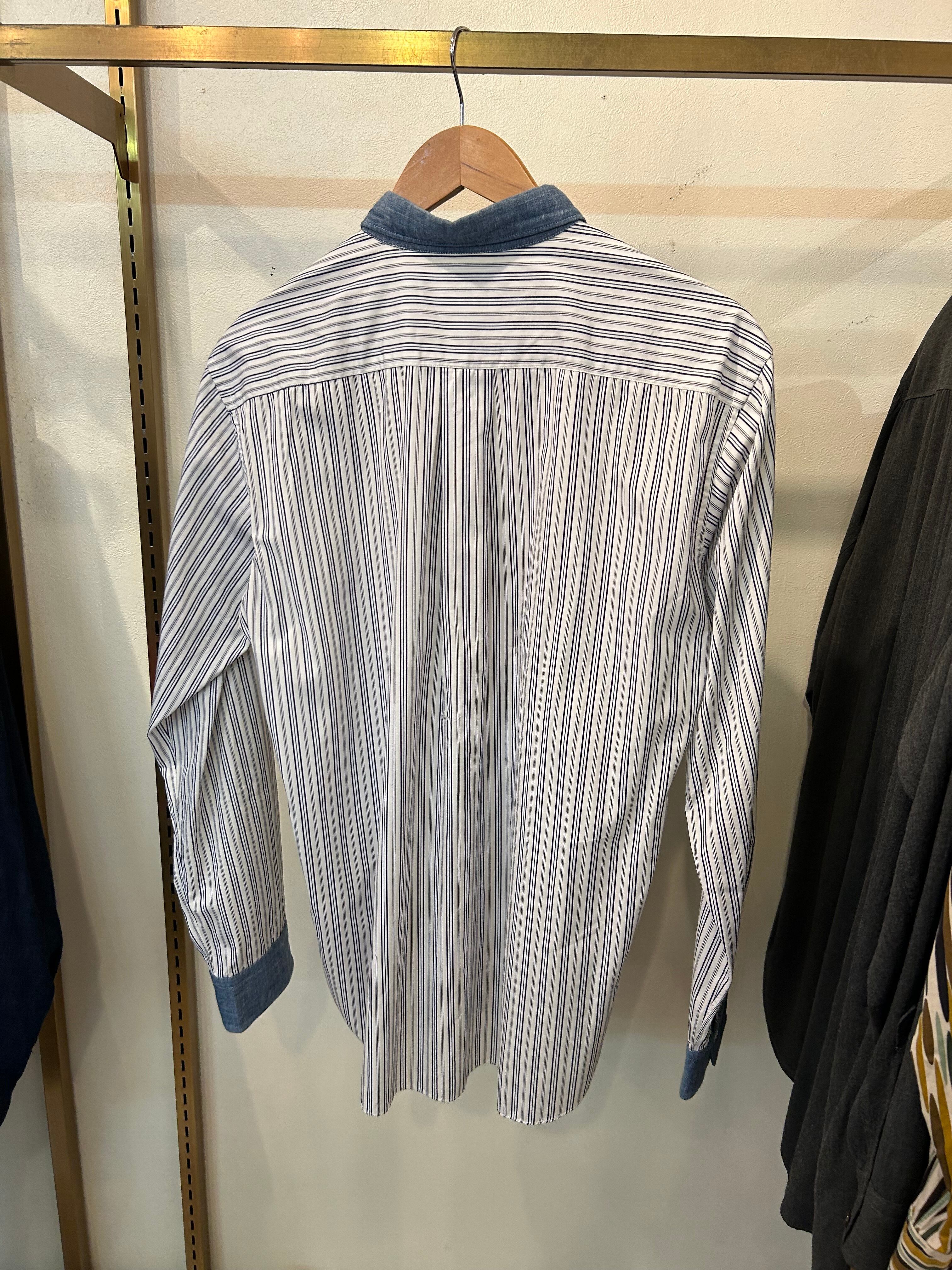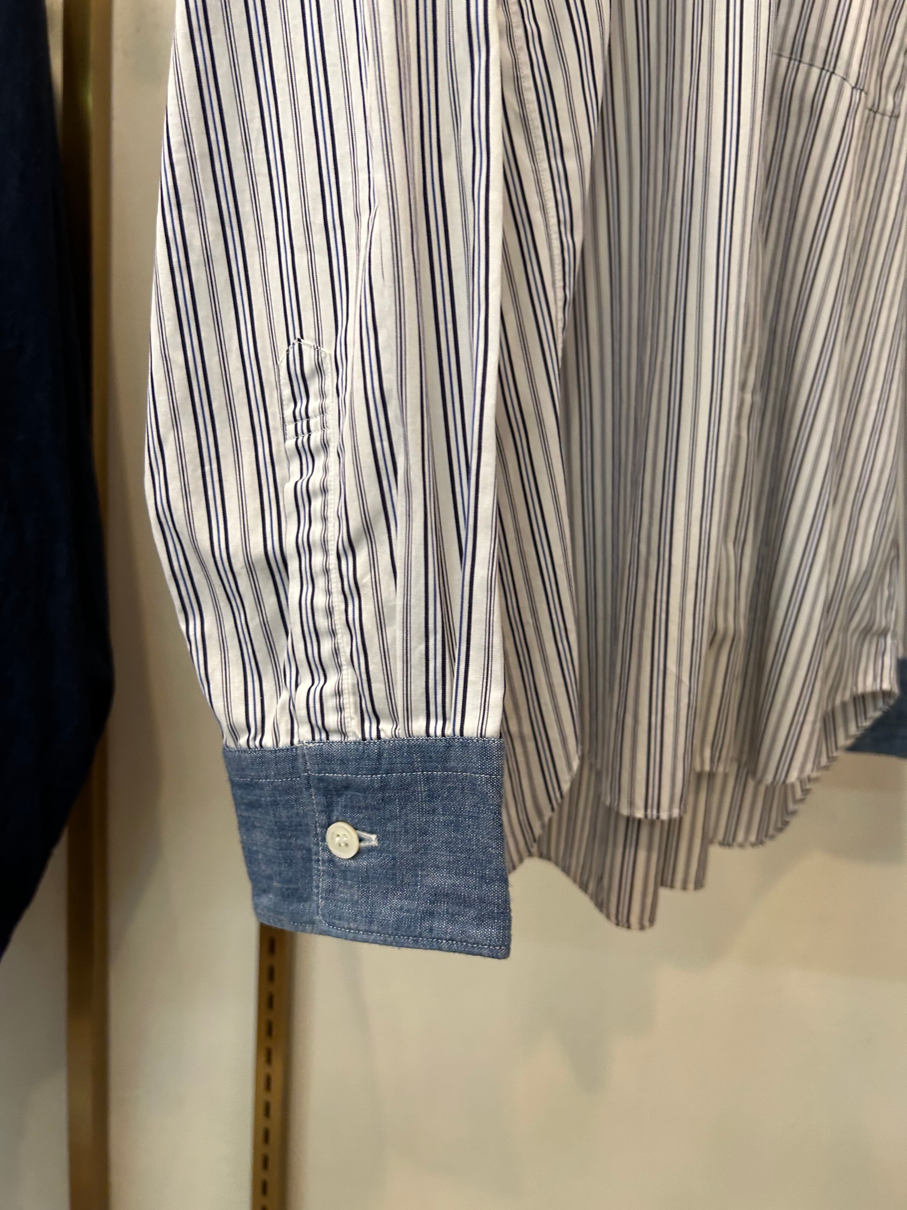 “GARÇONS HOMME DEUX” Switch chambray/stripe L/S cotton shirt