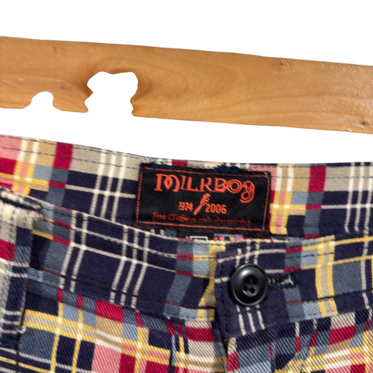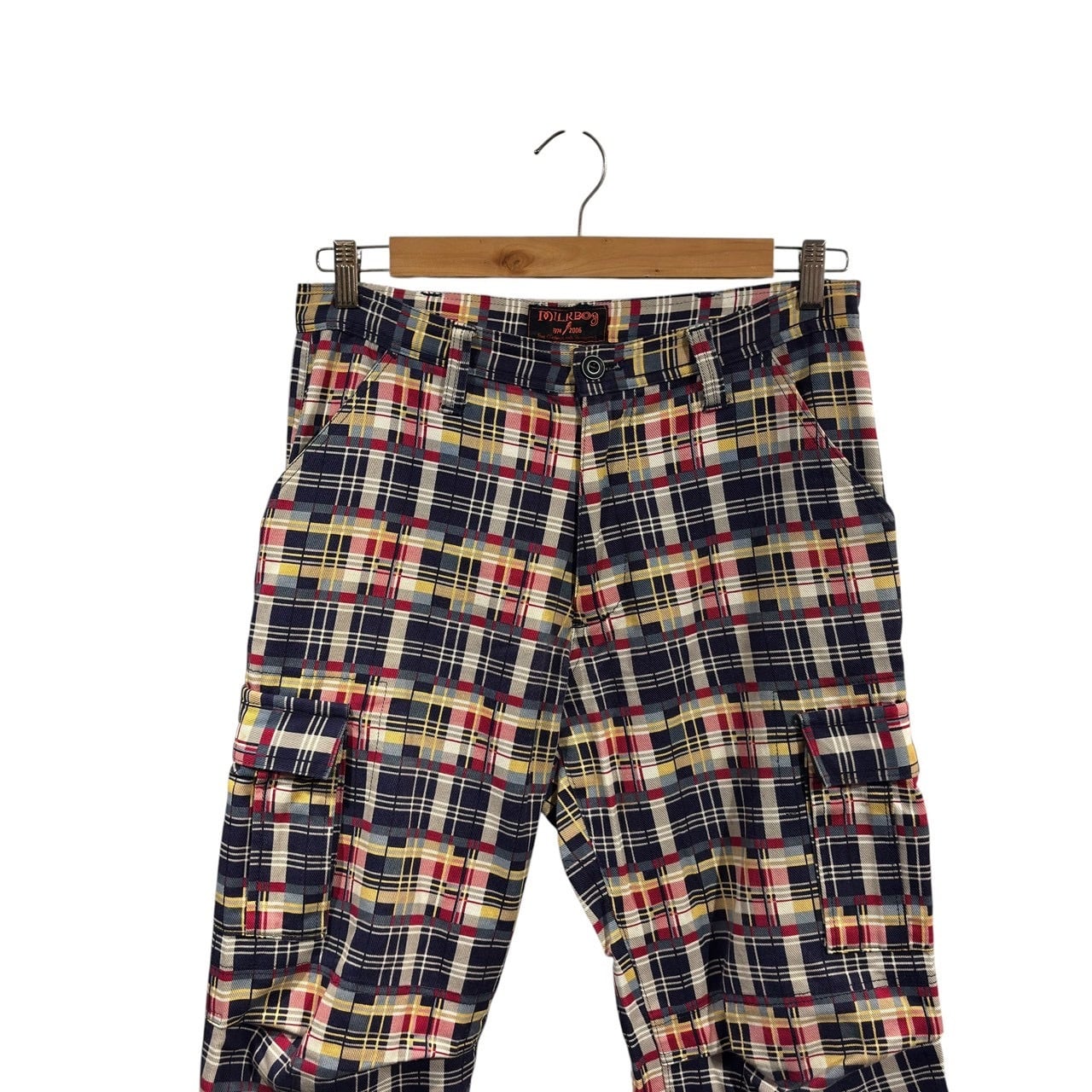 “MILK BOY” Check cotton bontage cargo pants