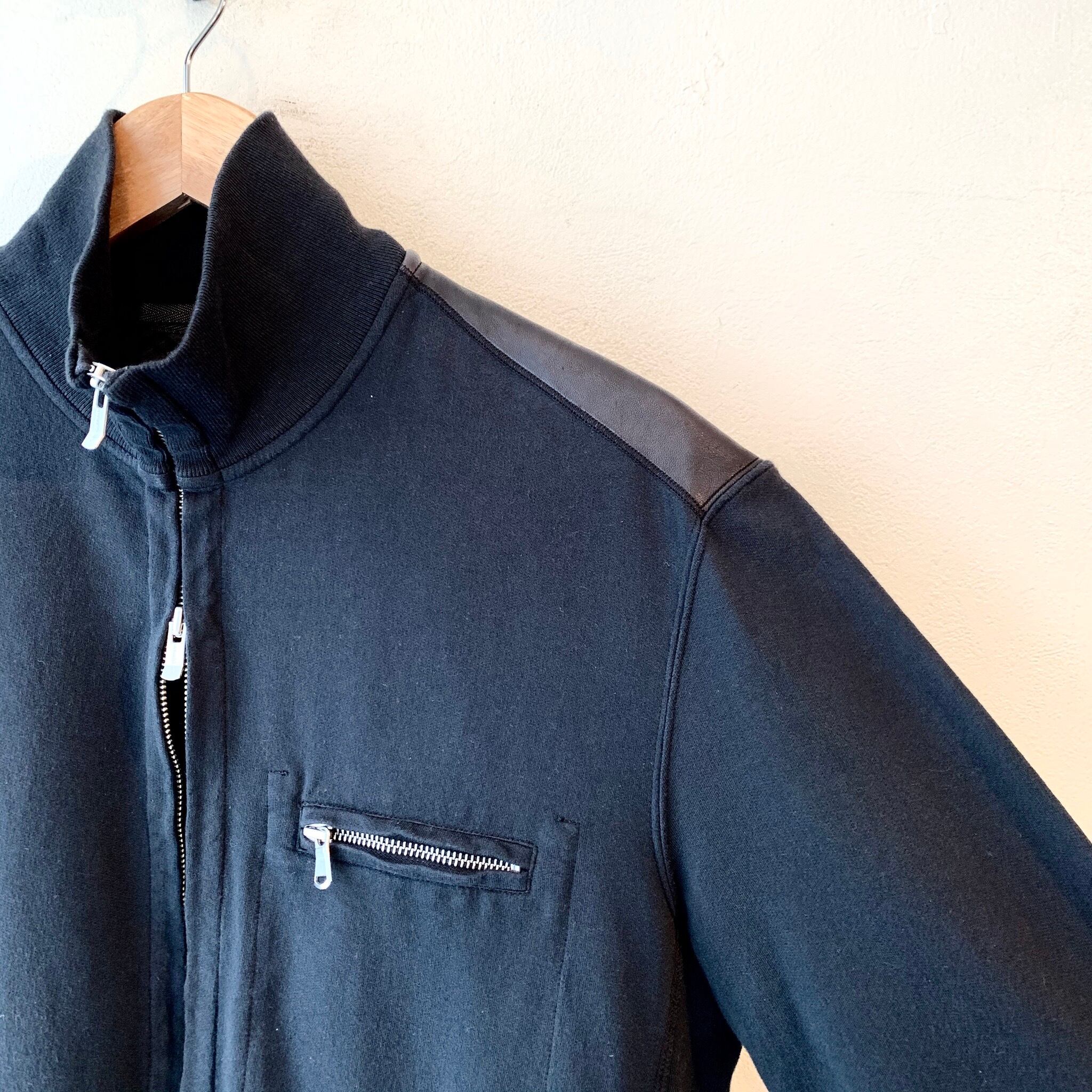 "C.P.COMPANY" black cotton leather switch double zip sweat shirt