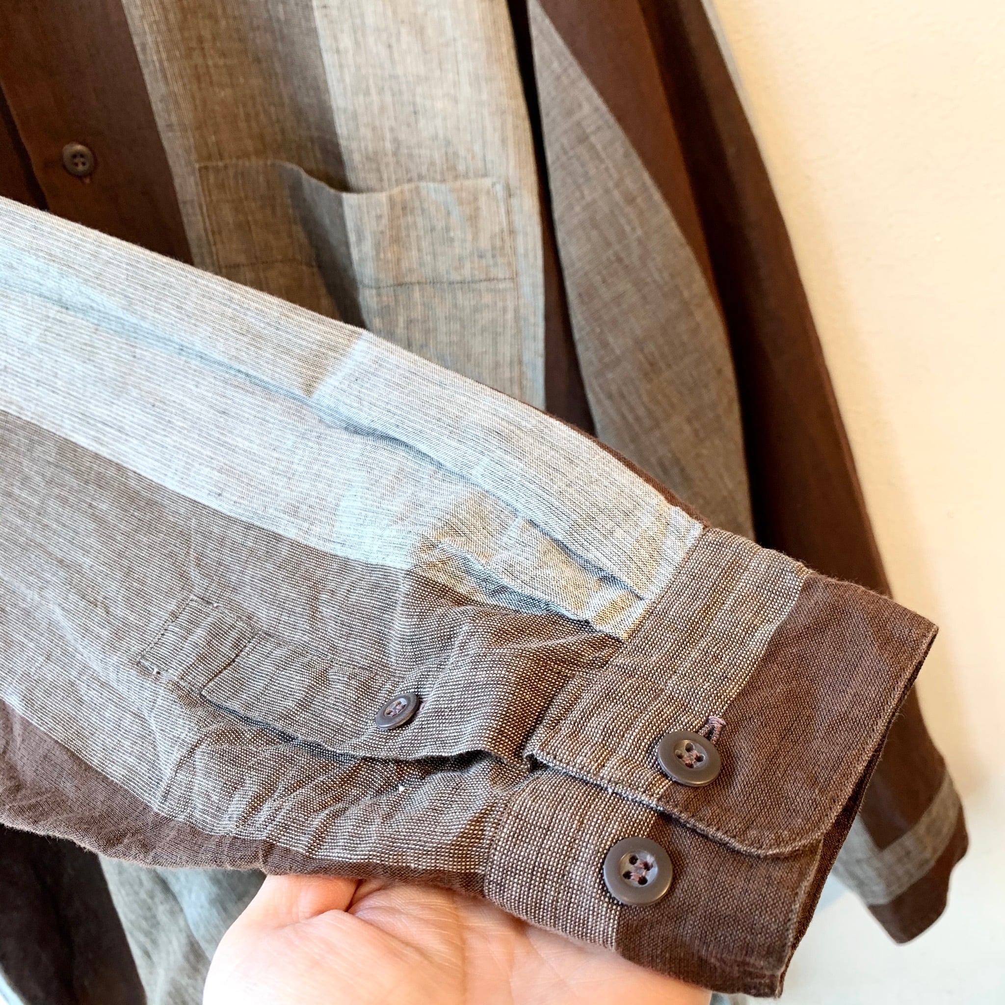 "ISSEY MIYAKE" gradation stripe linen&cotton design shirt