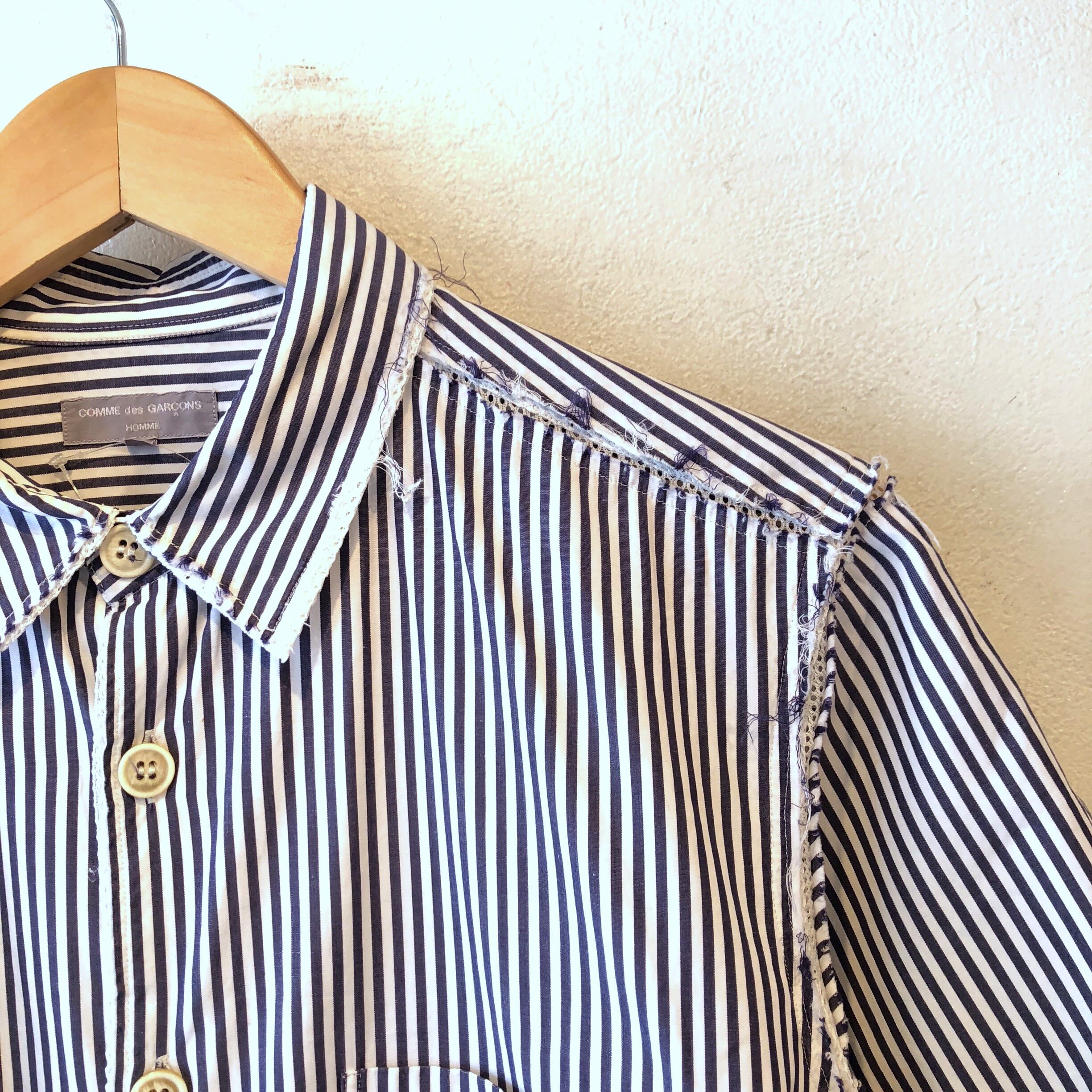 “COMME des GARCONS HOMME” inner mesh S/S cut off stripe shirt