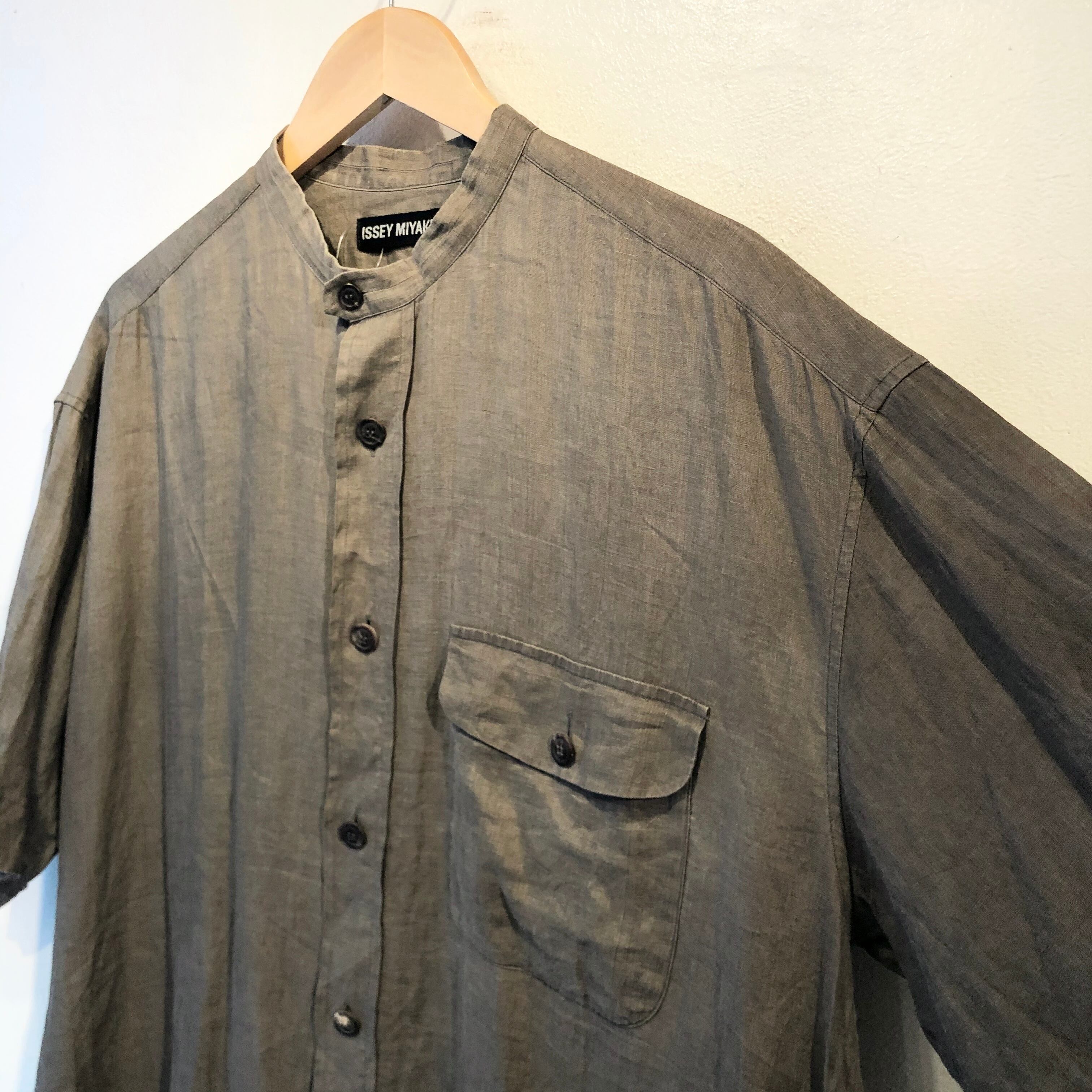 "ISSEY MIYAKE" linen design S/S band collar shirt