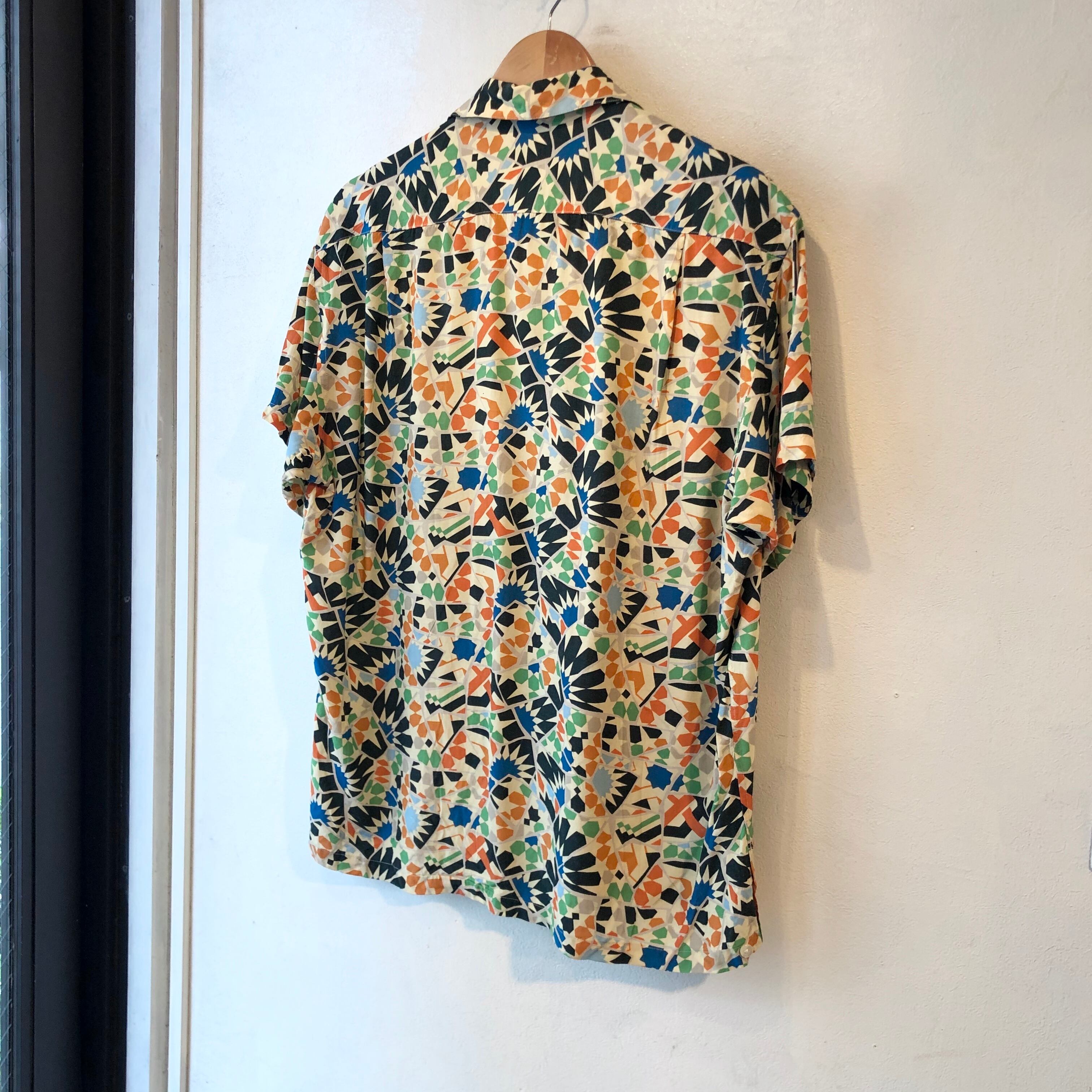 "MEN'S BIGI" unique pattern S/S open collar shirt