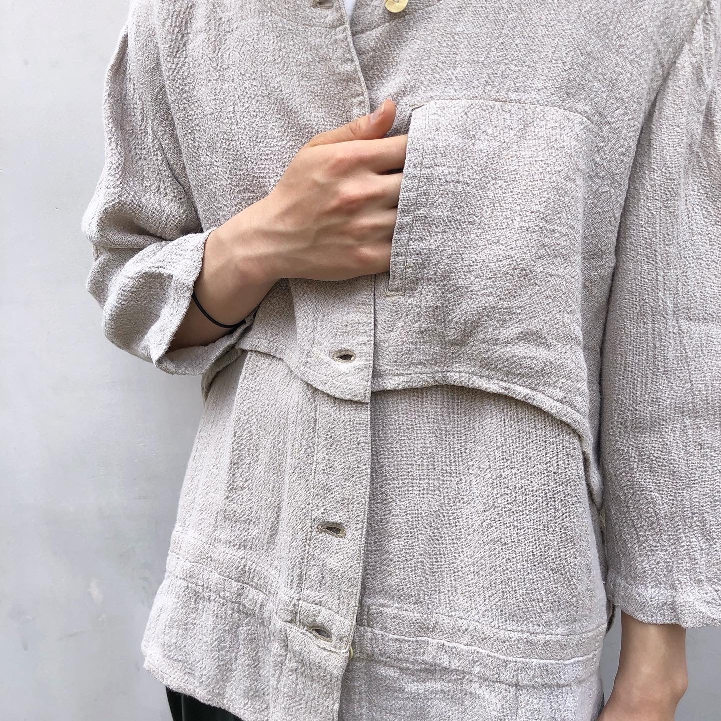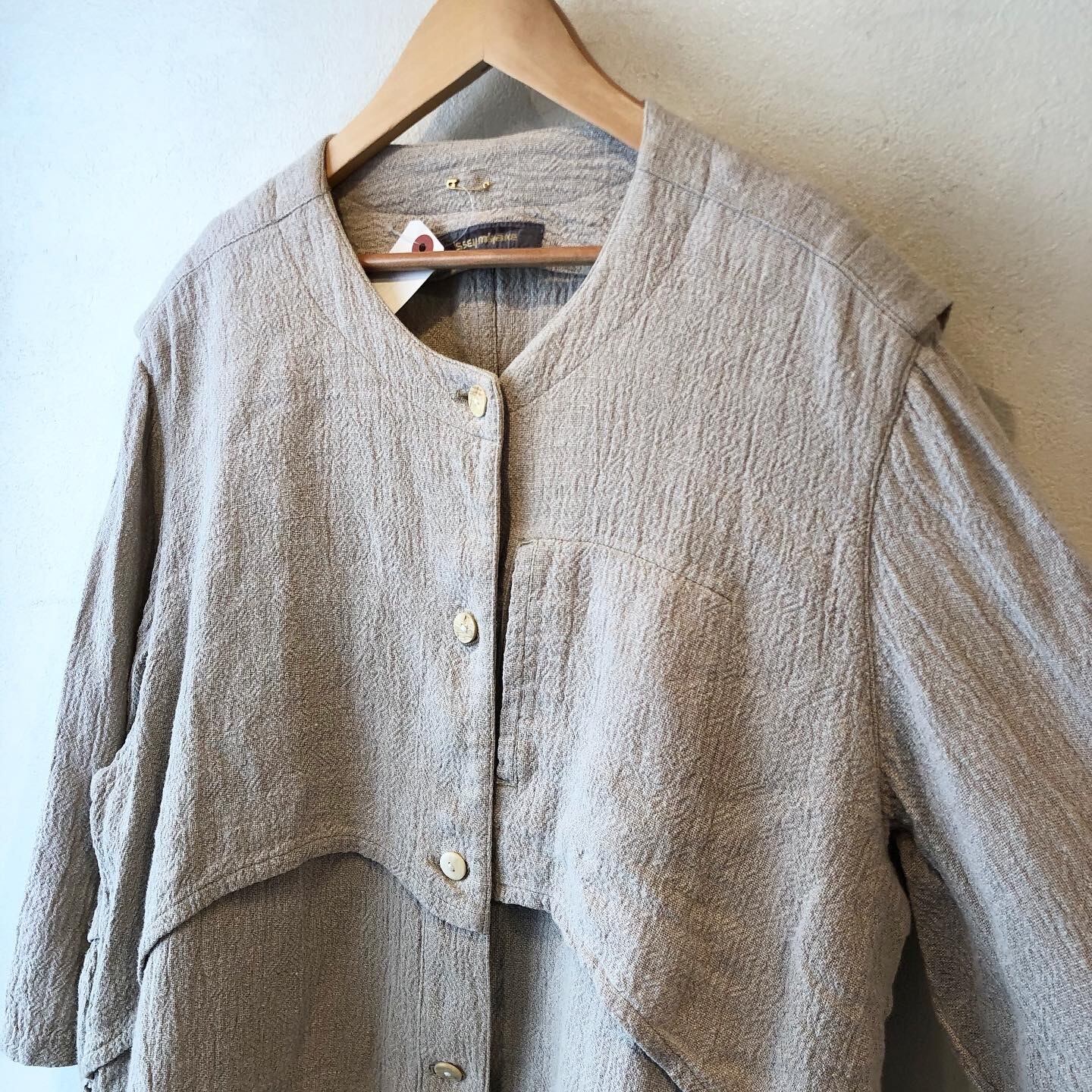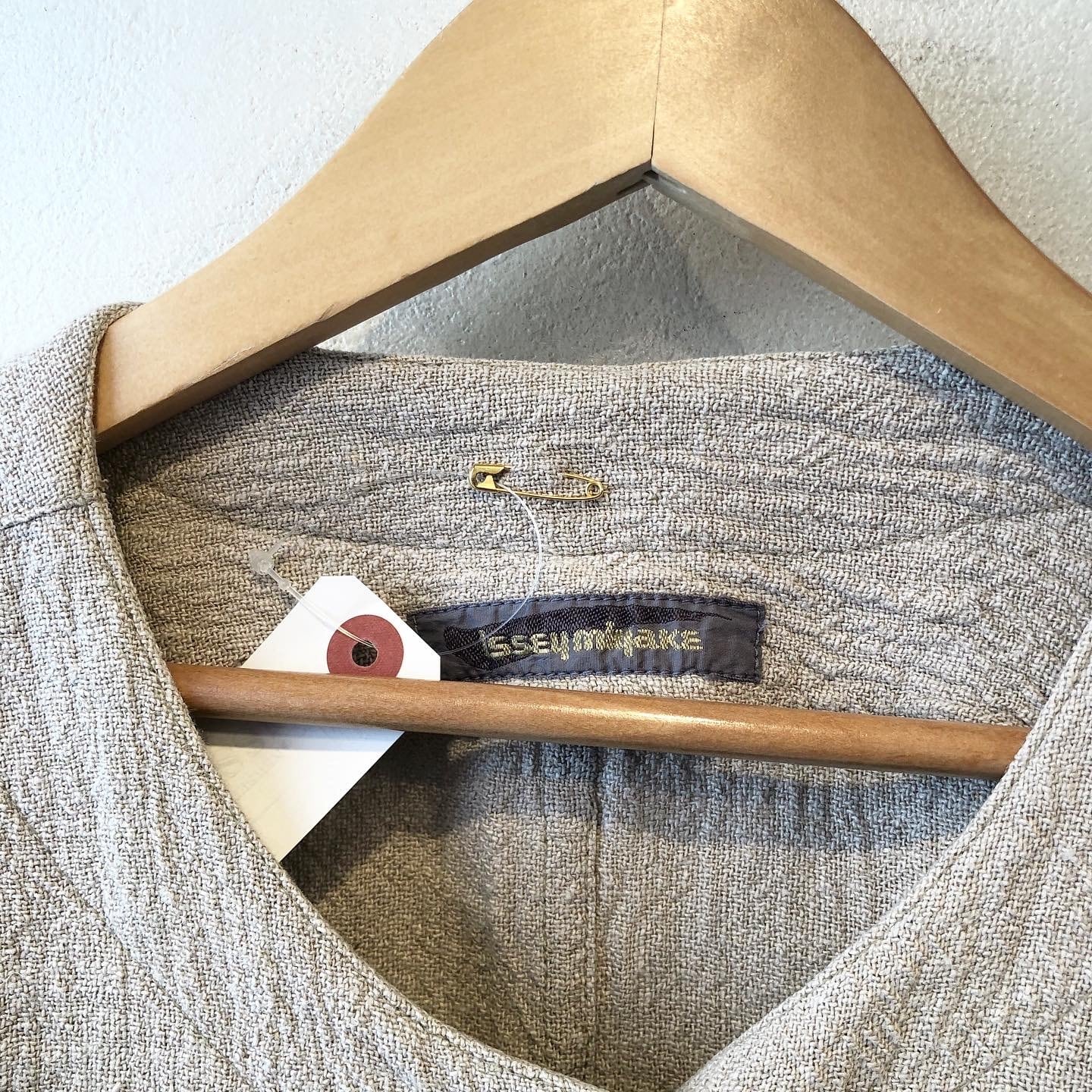 "ISSEY MIYAKE" unique design collarless linen jacket