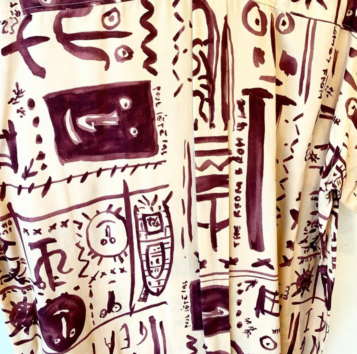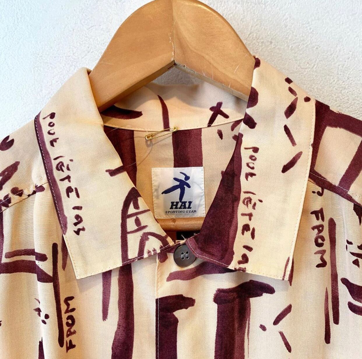 "ISSEY MIYAKE HAI" face pattern rayon open collar s/s shirt