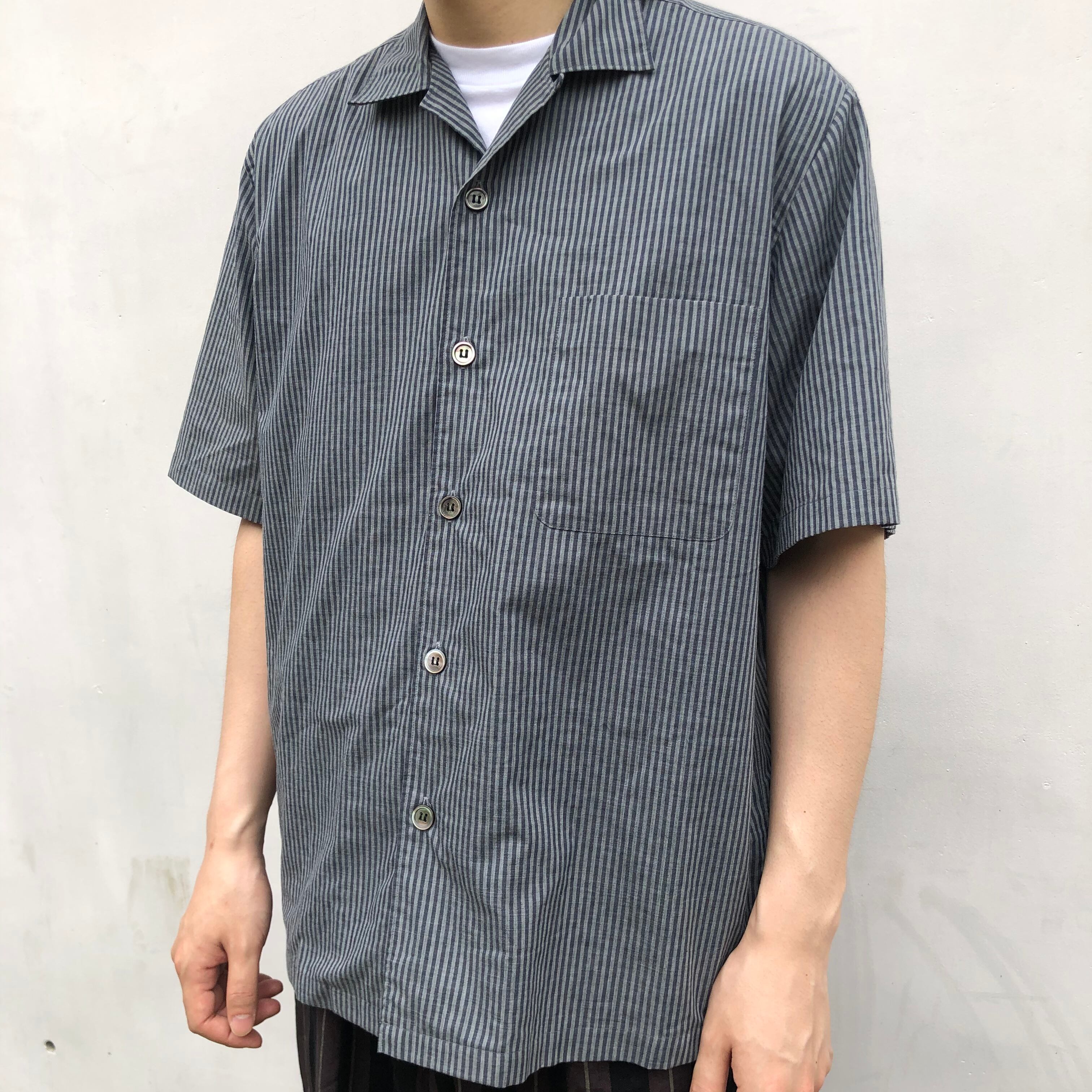 "COMME des GARÇONS HOMME" polyester design S/S open collar stripe shirt