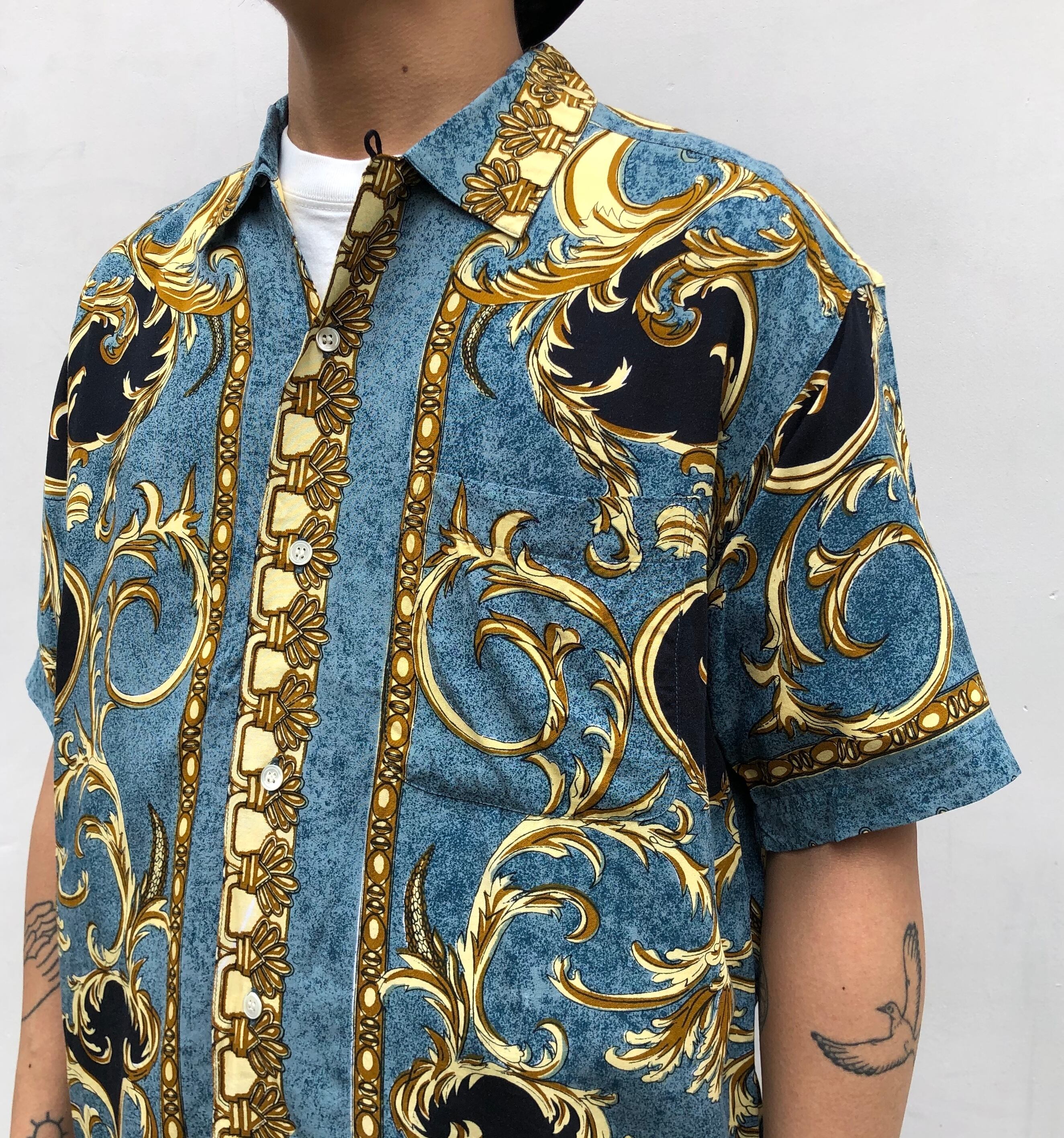 "JUN MEN" unique pattern rayon design S/S open collar shirt