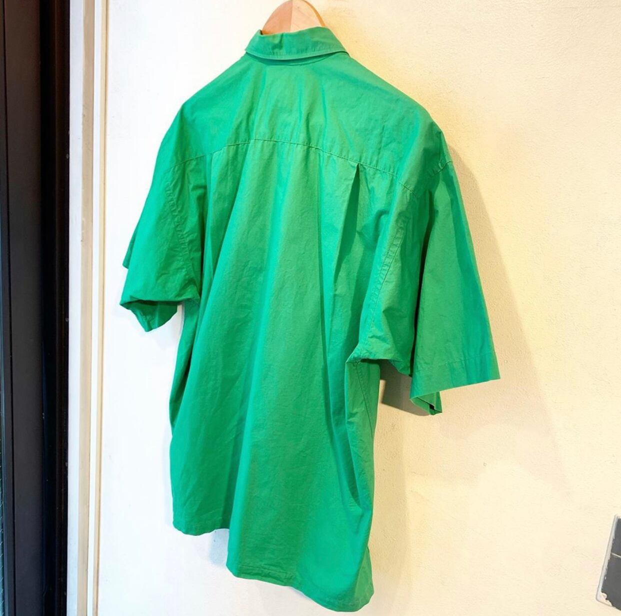"KANSAI MAN" green cotton lace up collar s/s shirt