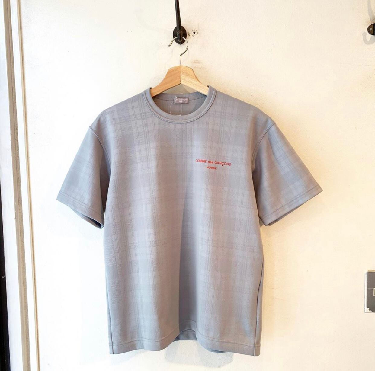 "GARÇONS HOMME" light gray poly logo printed jacquard tee