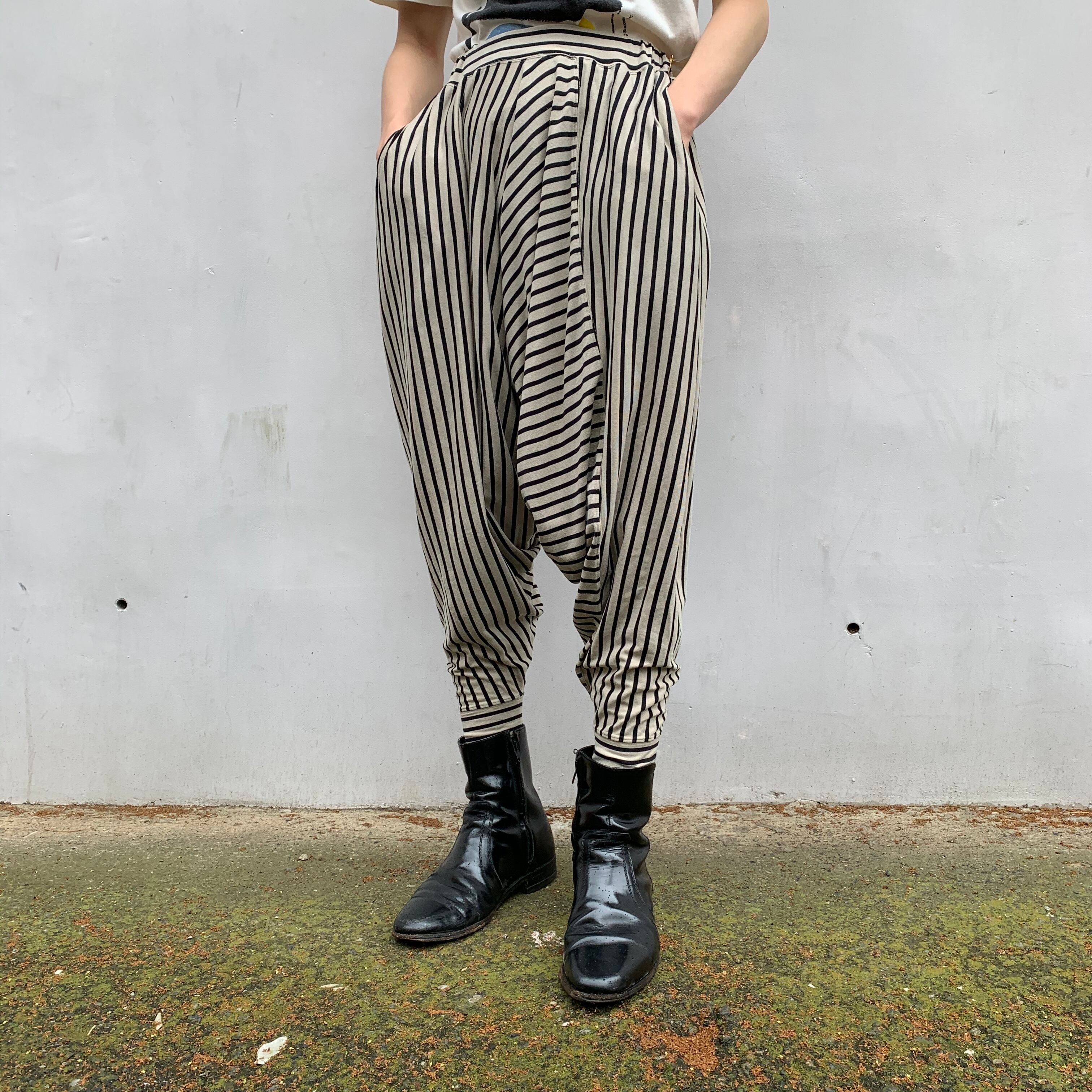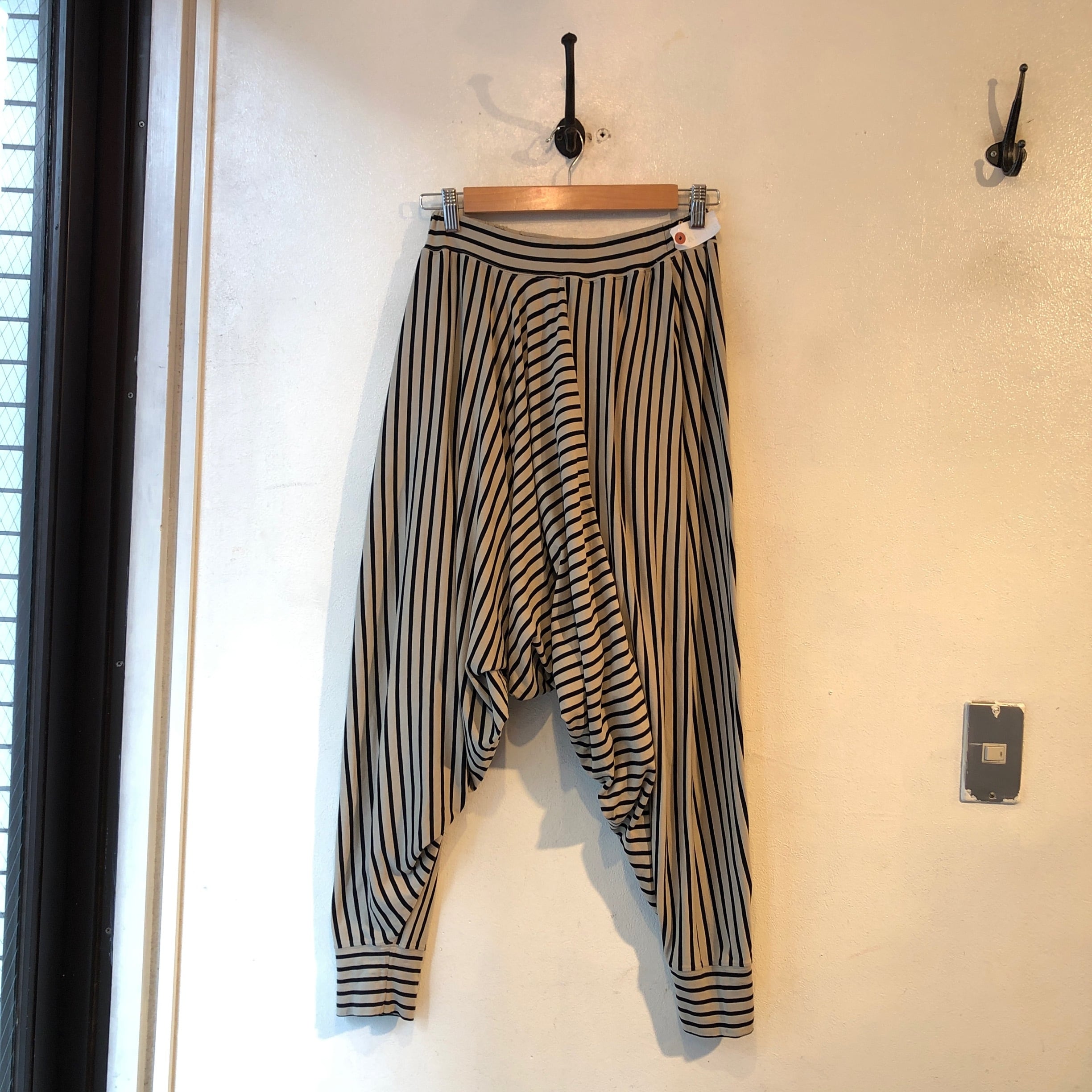 "ISSEY MIYAKE PERMANENT" Stripe cotton/polyurethane easy sarrouel pants