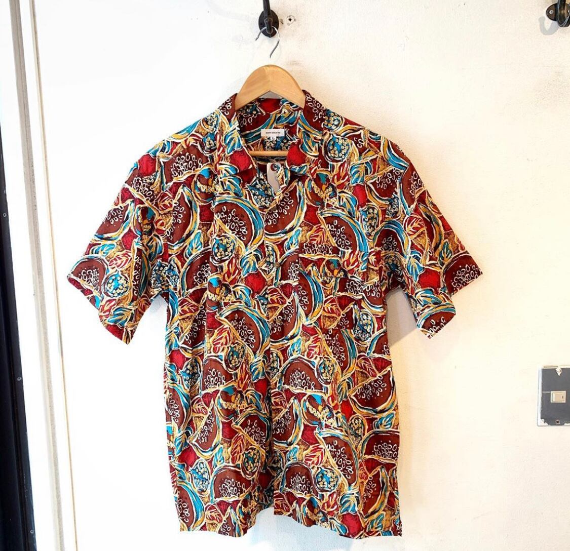"MEN'S MELROSE"unique pattern cotton design open collar s/s shirt
