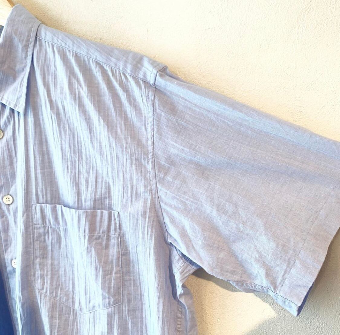 "ISSEY MIYAKE"ice blue cotton&linen pleats design s/s shirt