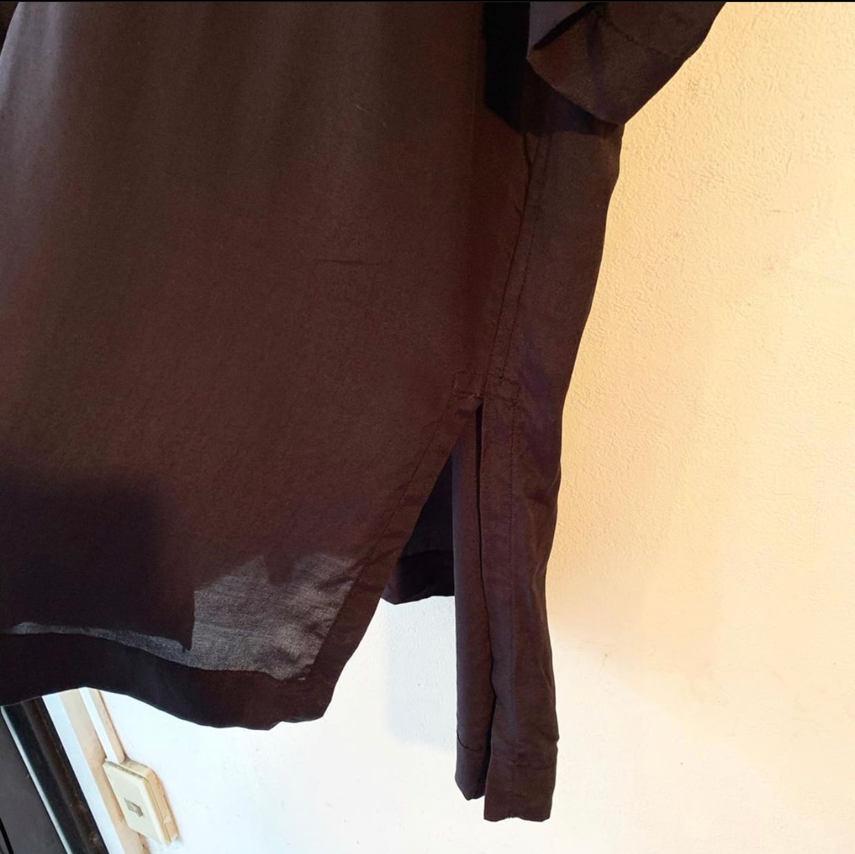 "ISSEY MIYAKE" black cupra plain open collar s/s shirt