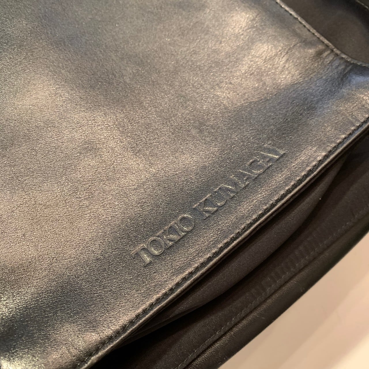 "TOKIO KUMAGAI" Black leather × Nylon hand bag