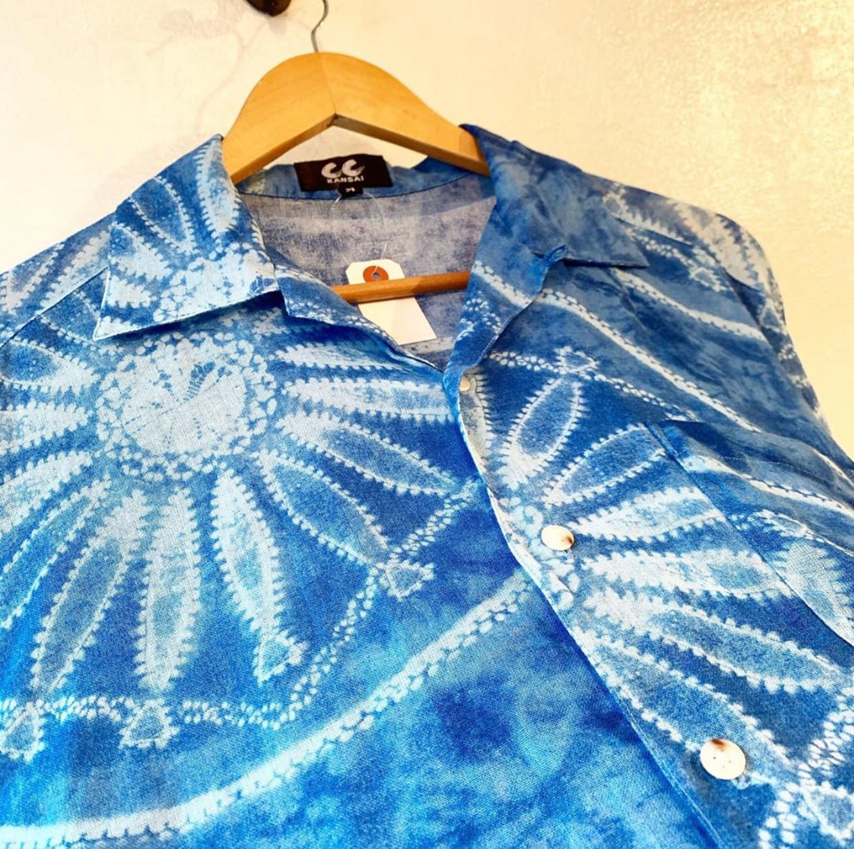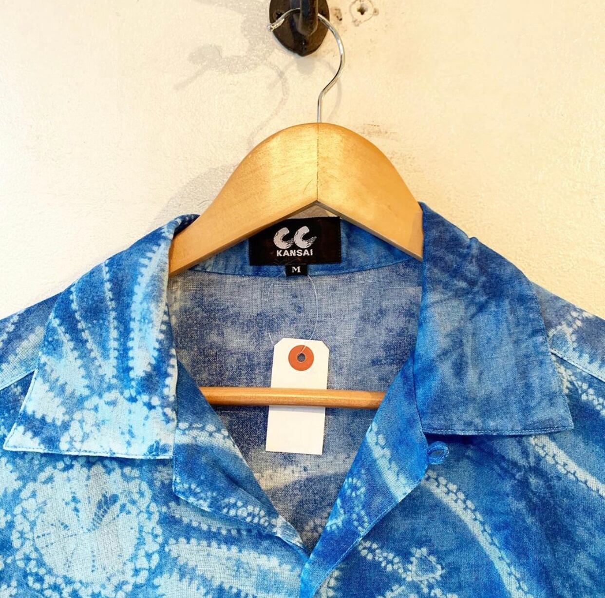"KANSAI CC" blue tie dye cotton&linen open collar s/s shirt