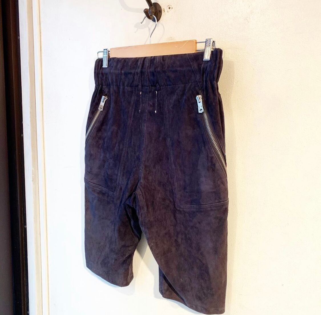 "The Soloist" navy nuback leather zip pocket easy shorts
