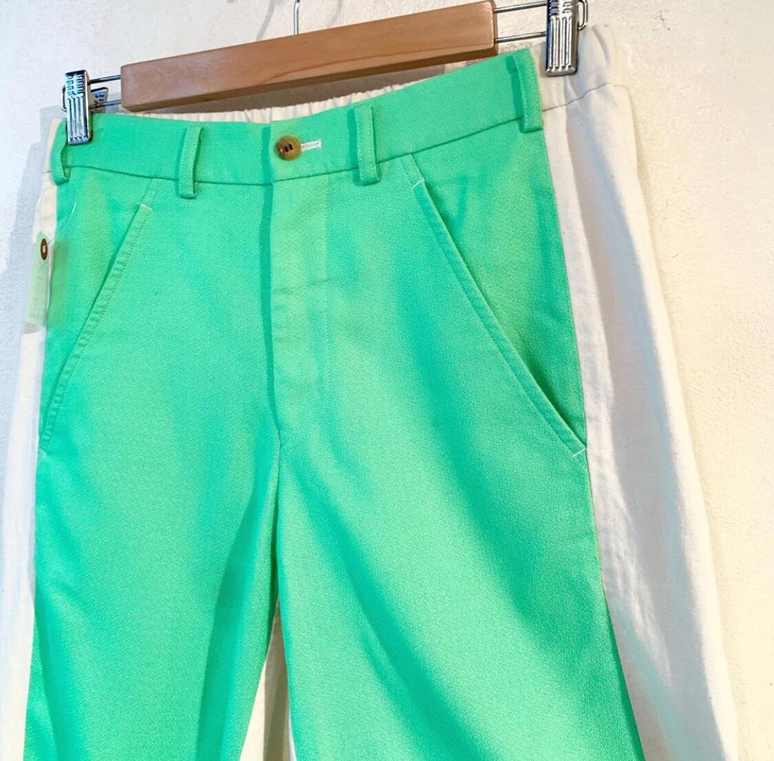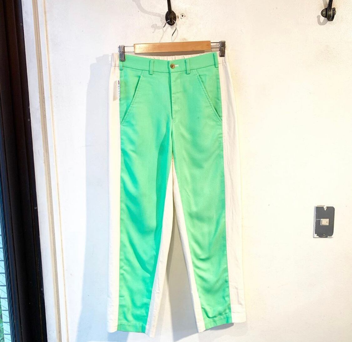 "COMME des GARÇONS HOMME PLUS" white x yellow green acrylic&cotton switch slacks