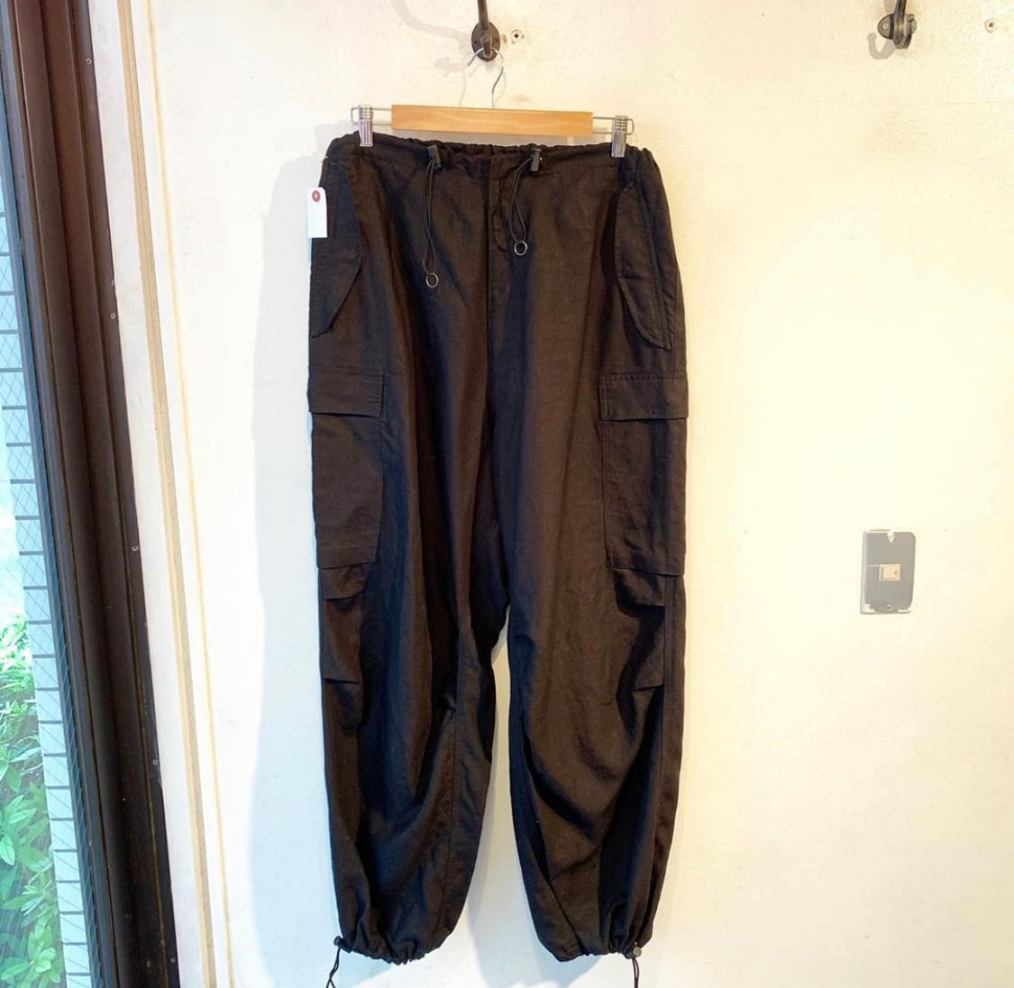 "Y’s" black linen design wide cargo pants