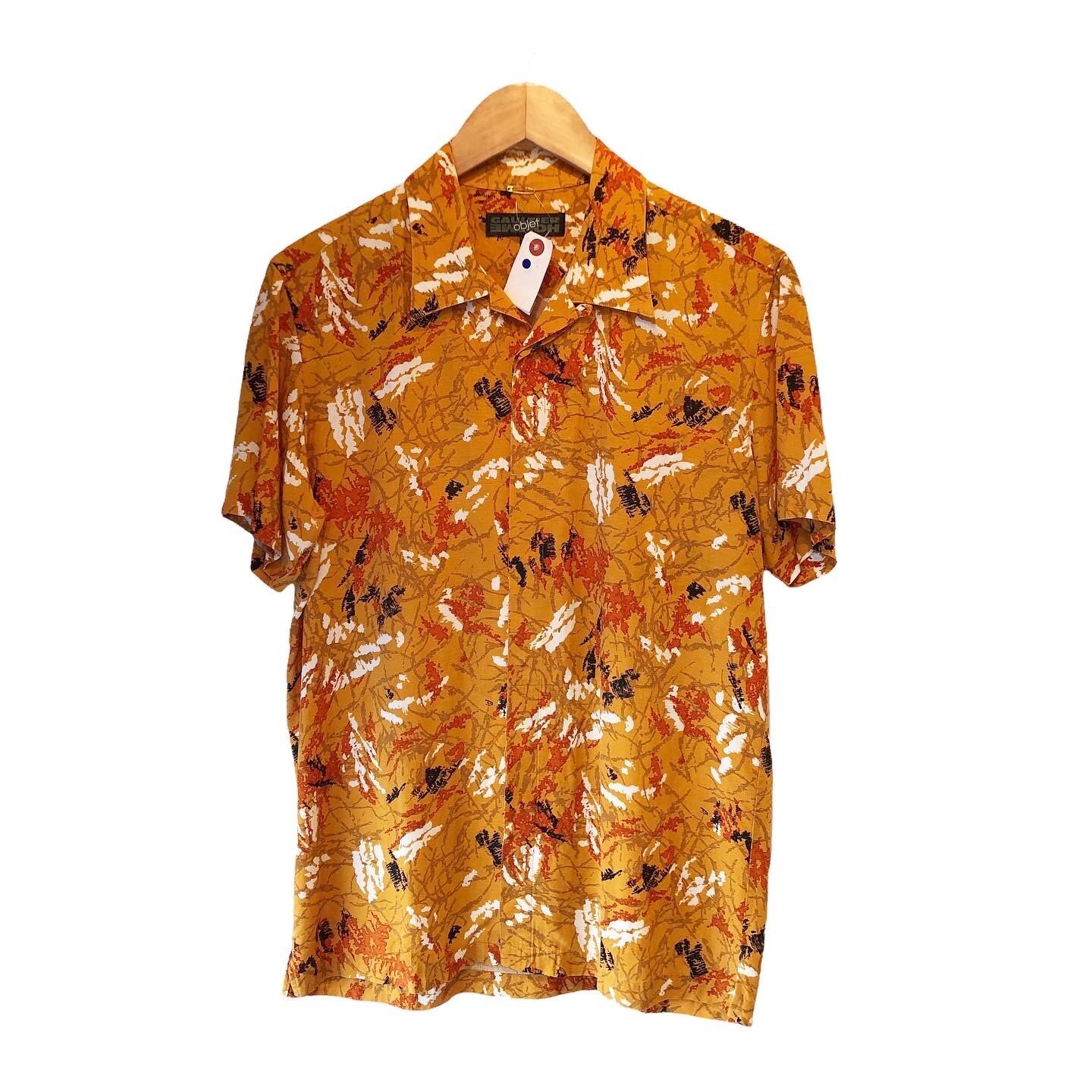 "GAULTIER objet" Art pattern rayon/linen S/S open collar shirt