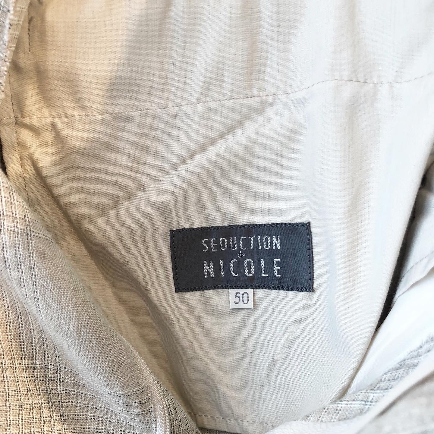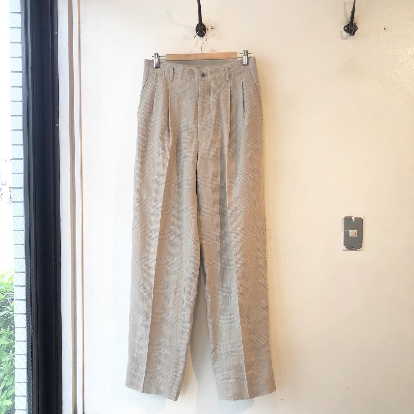"NICOLE" Check beige linen design 2tack pants
