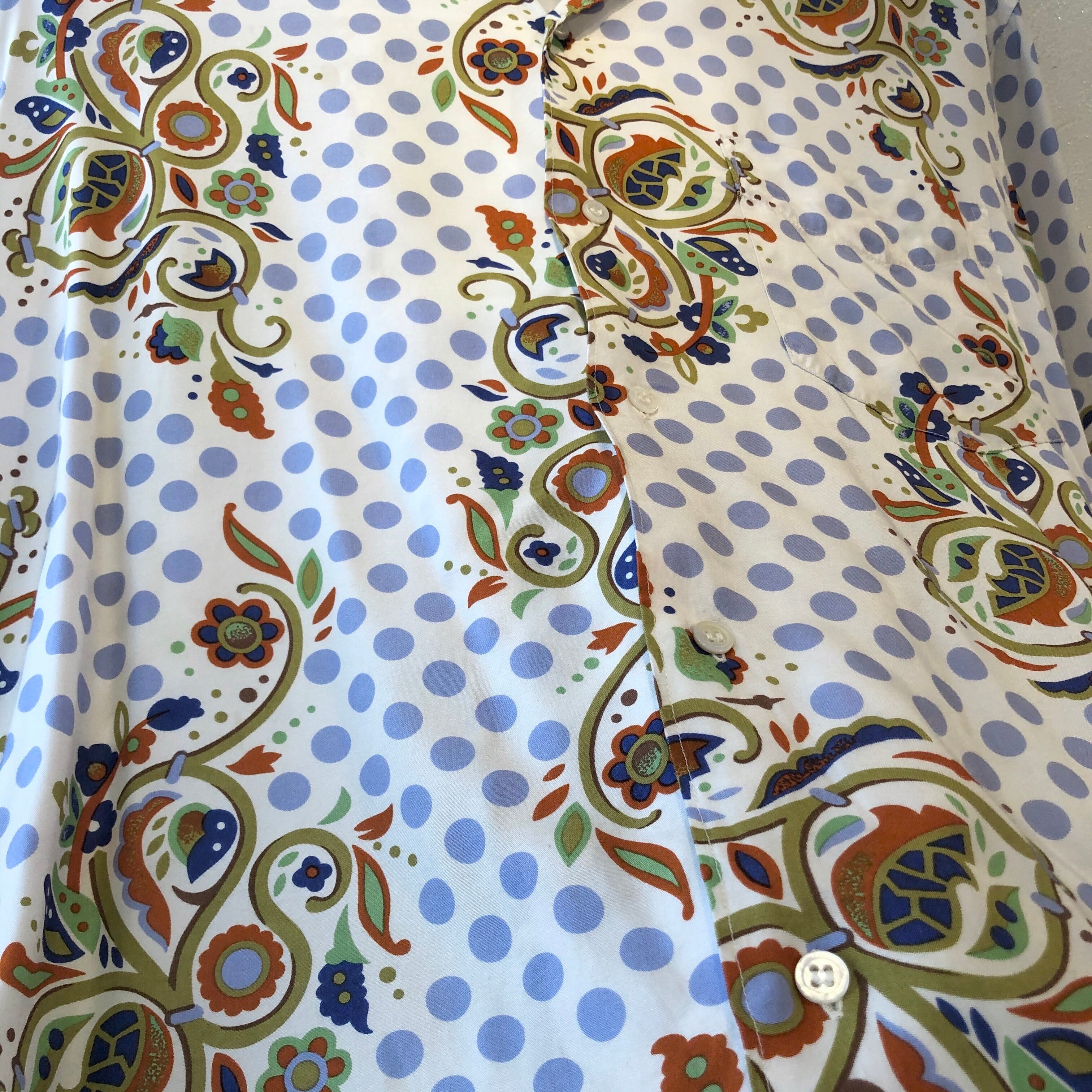 "GRASS MEN'S" dot & flower pattern rayon s/s open collar shirt