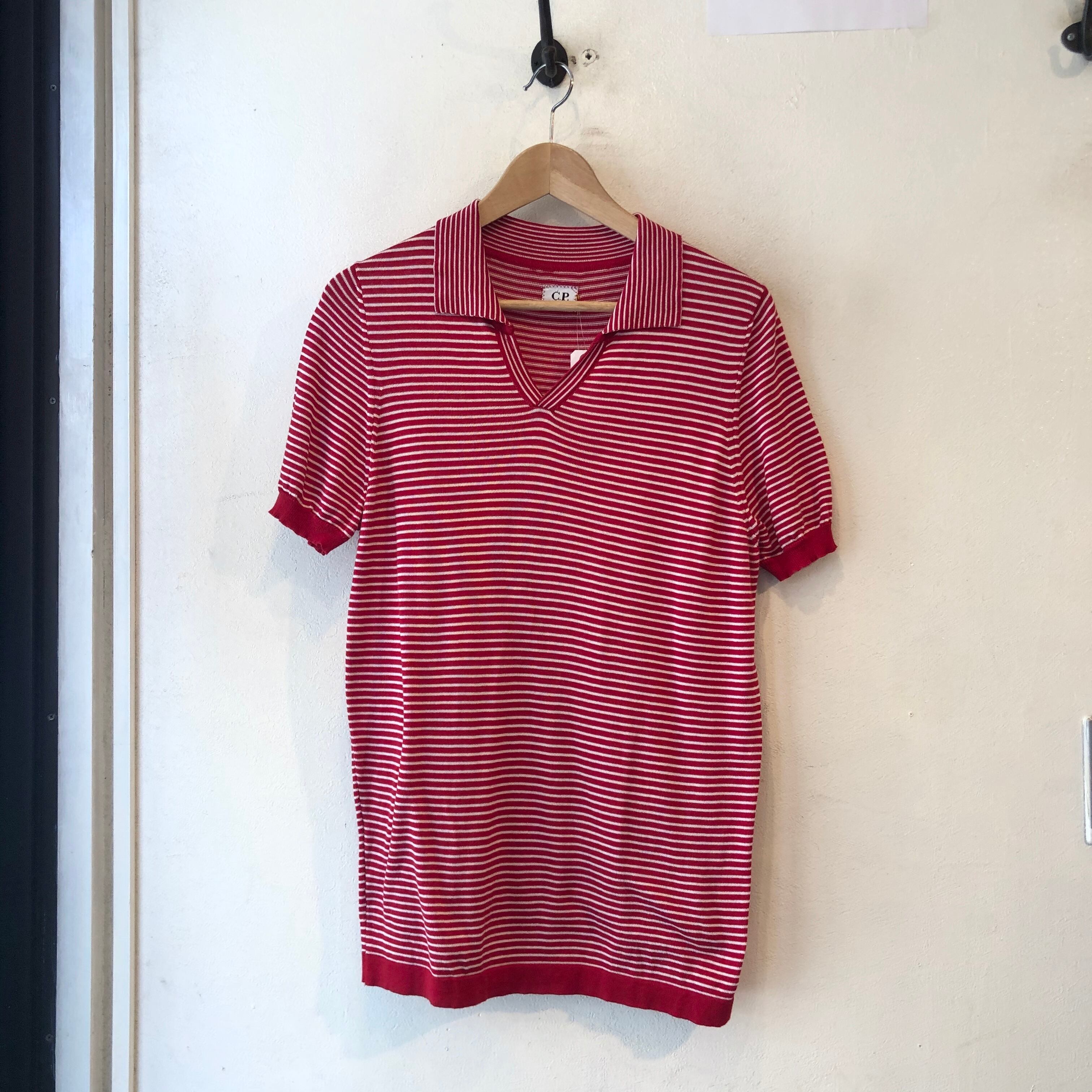 "C.P.COMPANY" Cotton border design S/S skipper knit polo