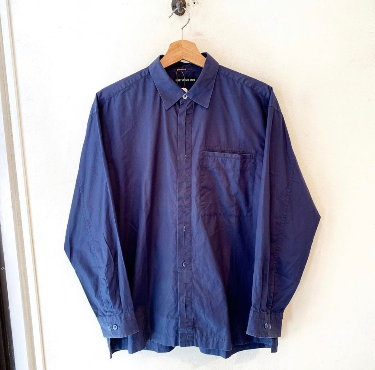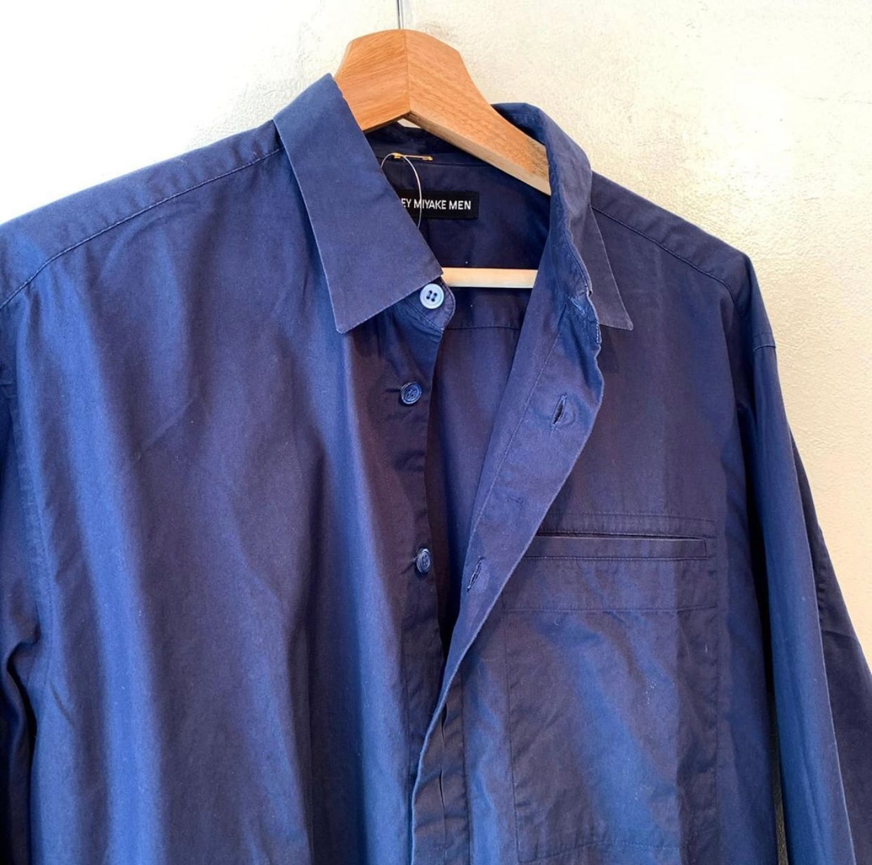 "ISSEY MIYAKE MEN" navy cotton unique fly front design shirt