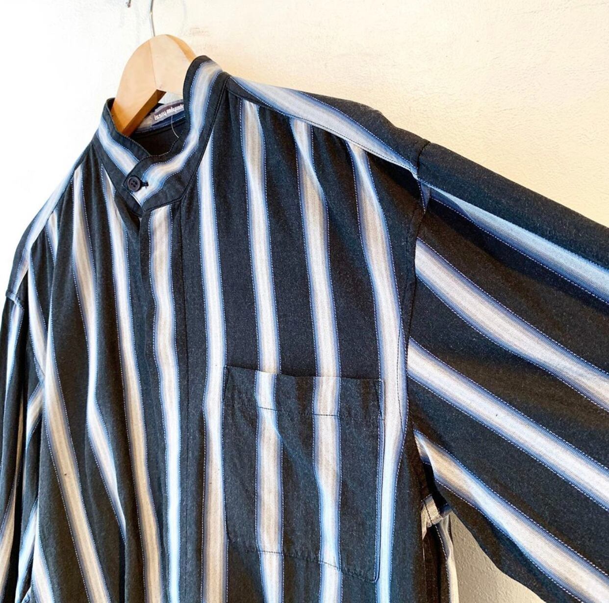 "ISSEY MIYAKE MEN" stripe pattern fly front design stand collar shirt