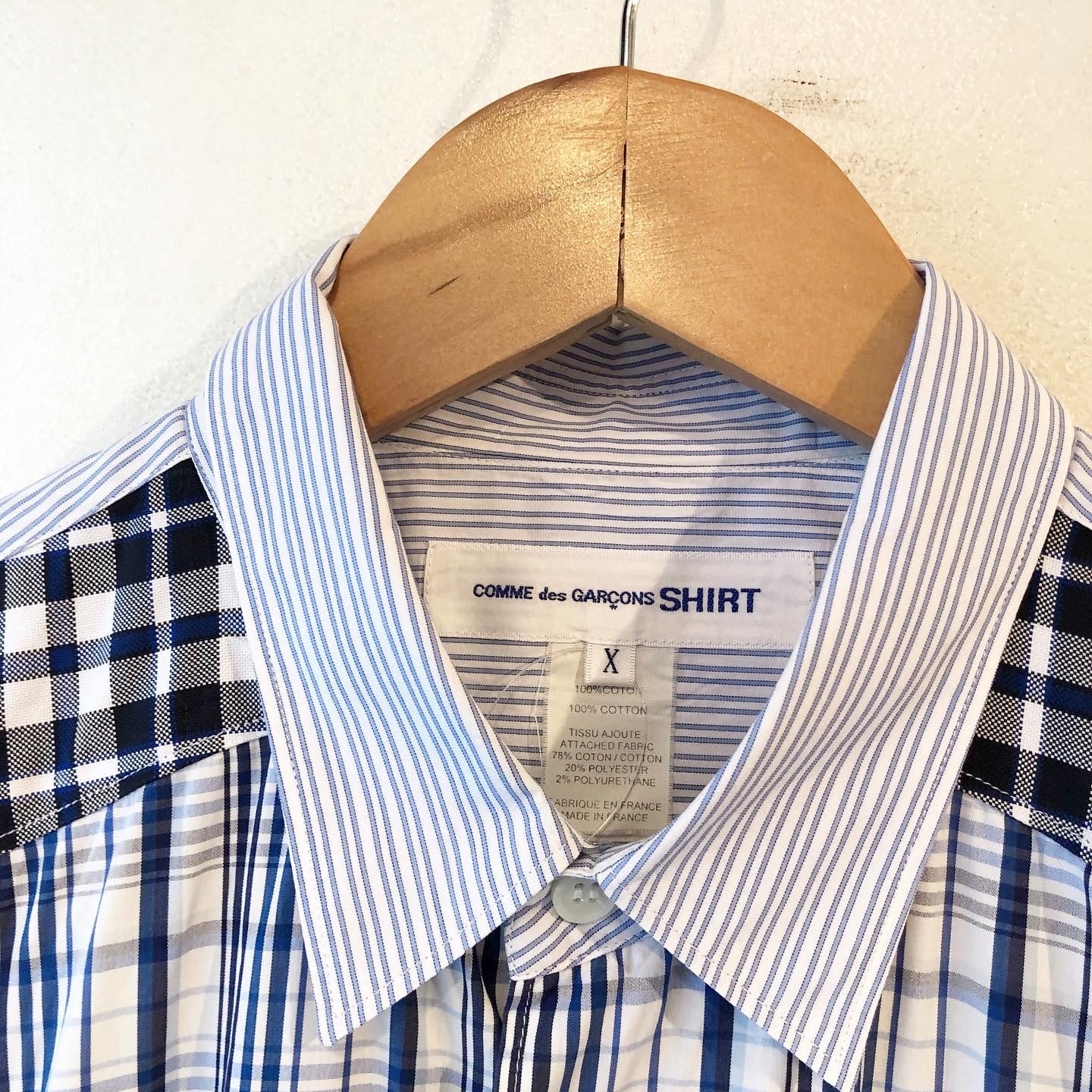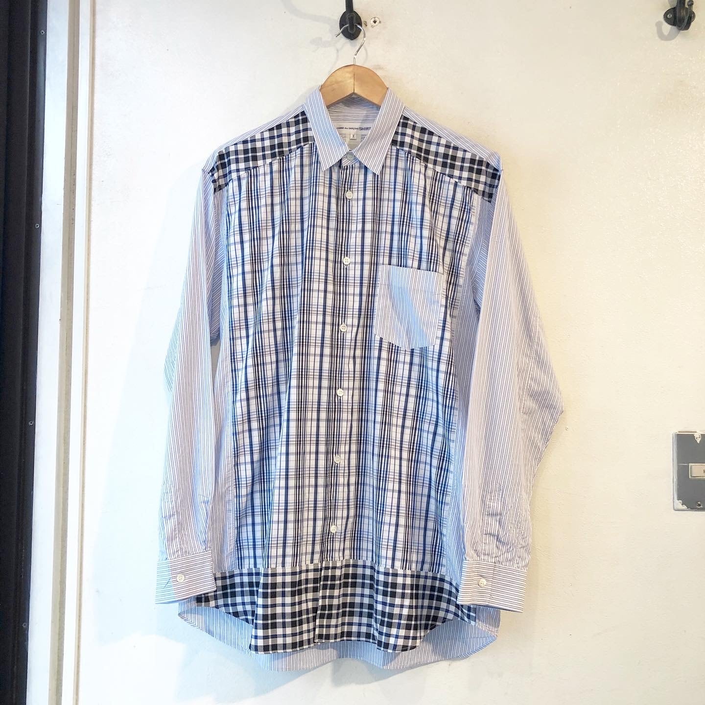 "GARÇONS SHIRT" stripe & check switch cotton design L/S shirt