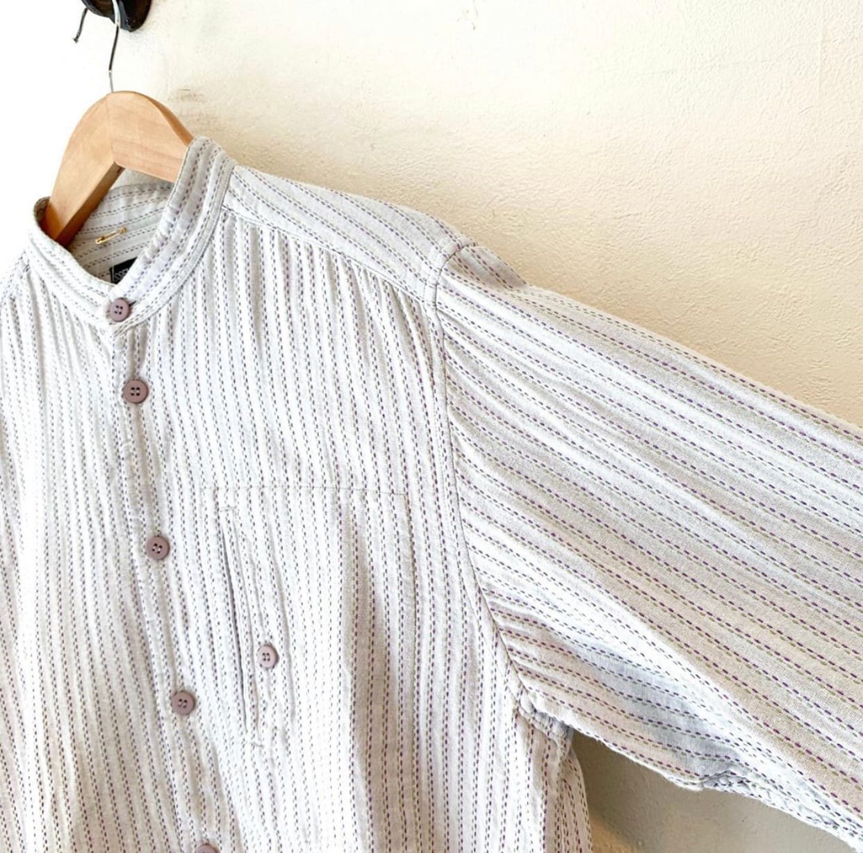 "ISSEY MIYAKE MEN" ● light gray cotton gauze band collar shirt