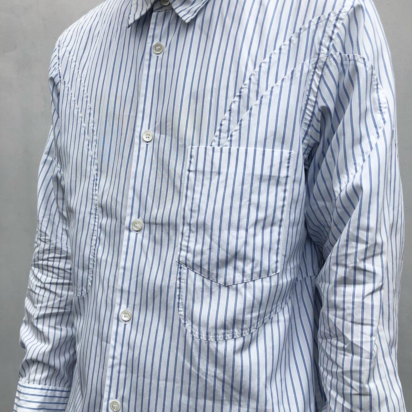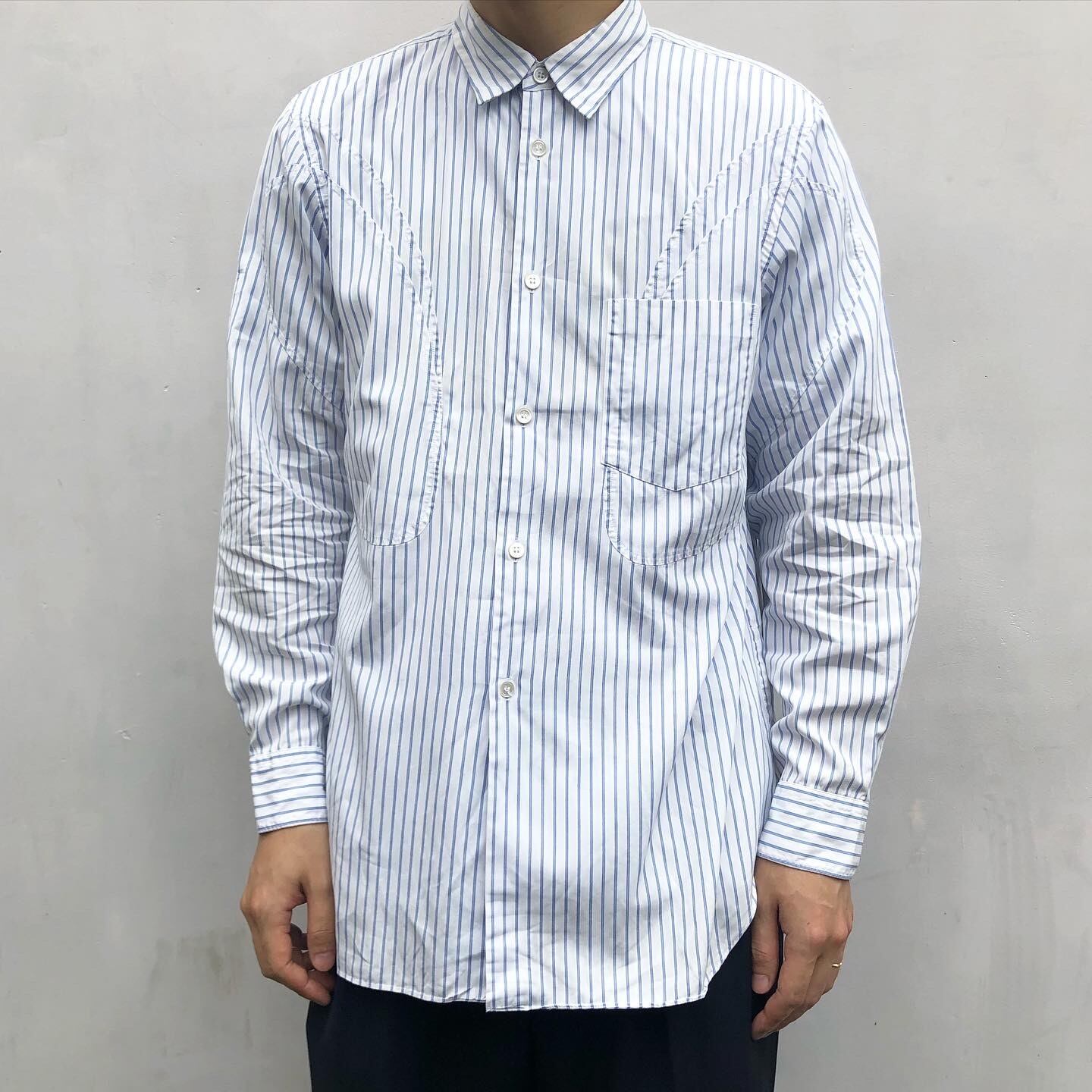 "GARÇONS HOMME PLUS" curve switch cotton design L/S stripe shirt