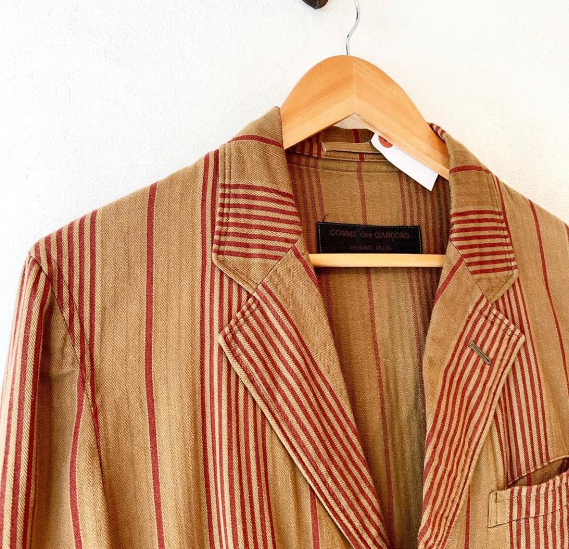 "GARÇONS HOMME" stripe pattern cotton unique lapel design jacket