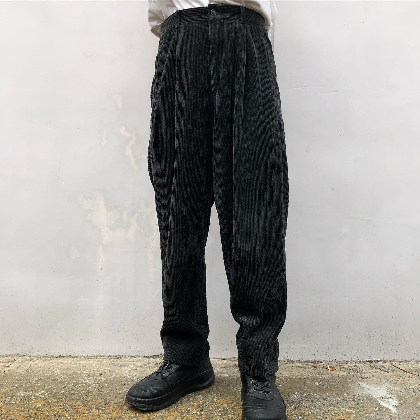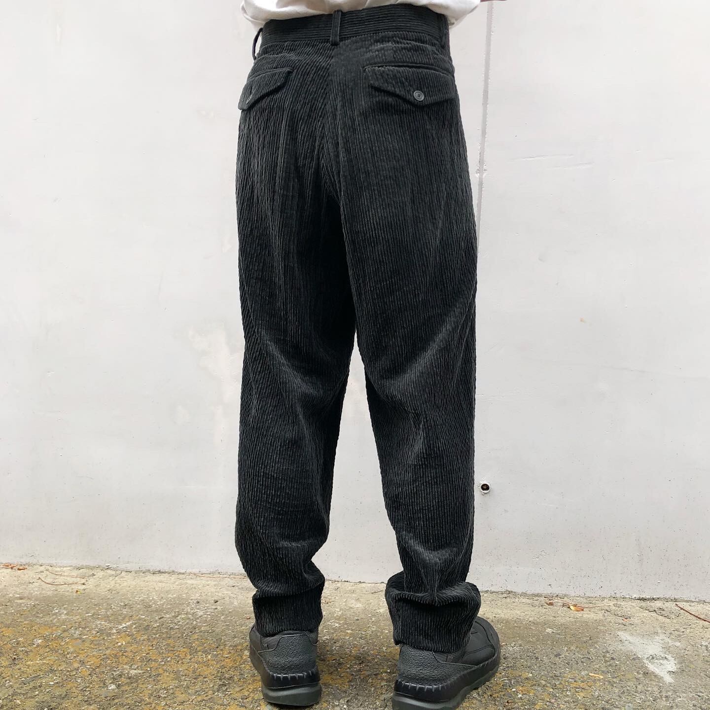 "ISSEY MIYAKE" Black cotton corduroy design 2tuck pants