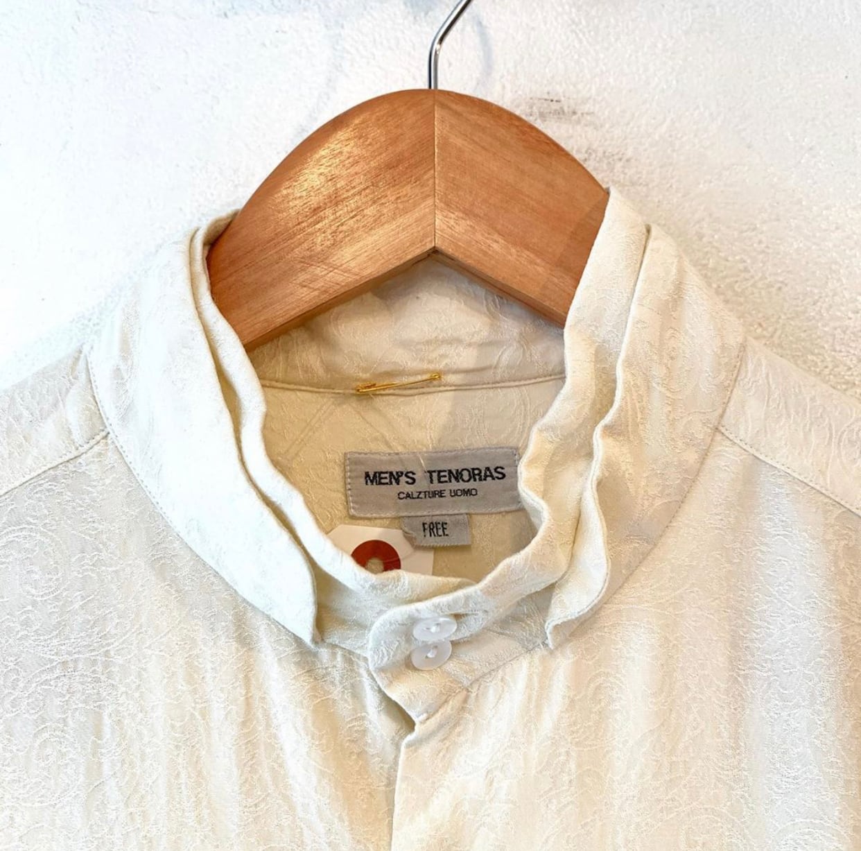 "MEN'S TENORAS" ivory cupra&rayon&silk unique collar shirt