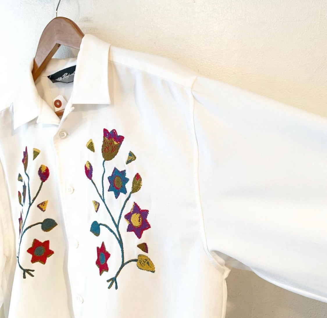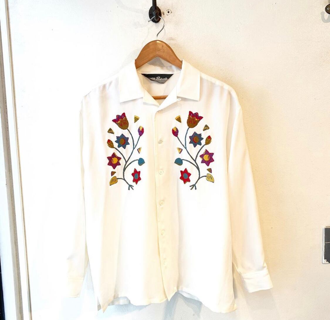 "KANSAI" white flower embroidery open collar shirt
