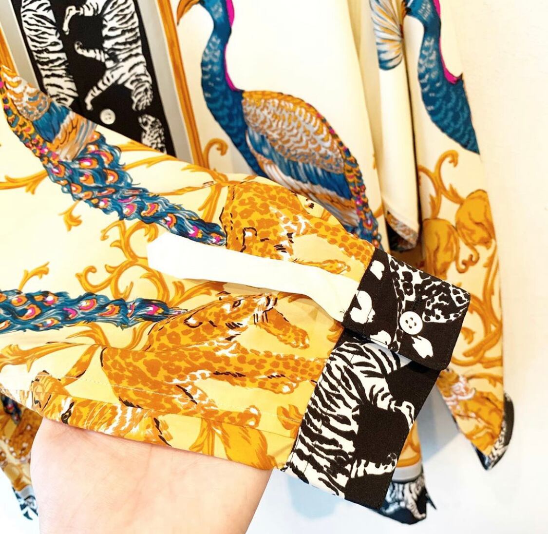 "KANSAI" white base animal printed open collar shirt