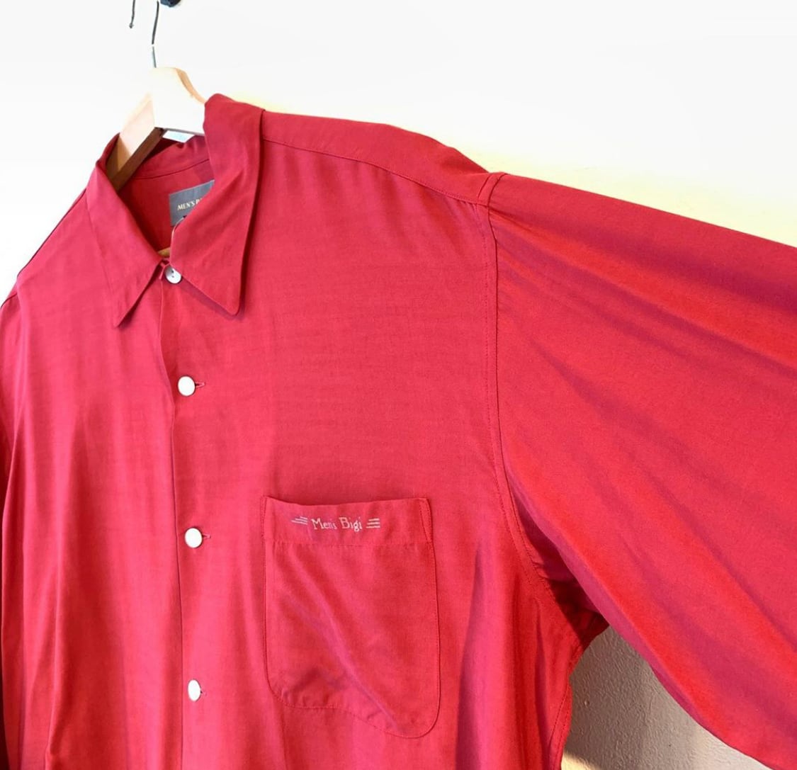 "MEN'S BIGI" rayon × silk design L/S pocket printed shirt