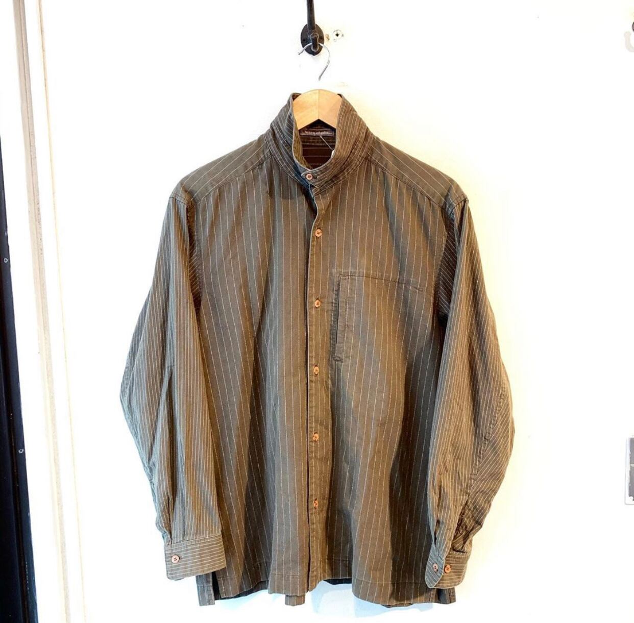 "ISSEY MIYAKE MEN" switch stripe cotton&poly 2way collar shirt