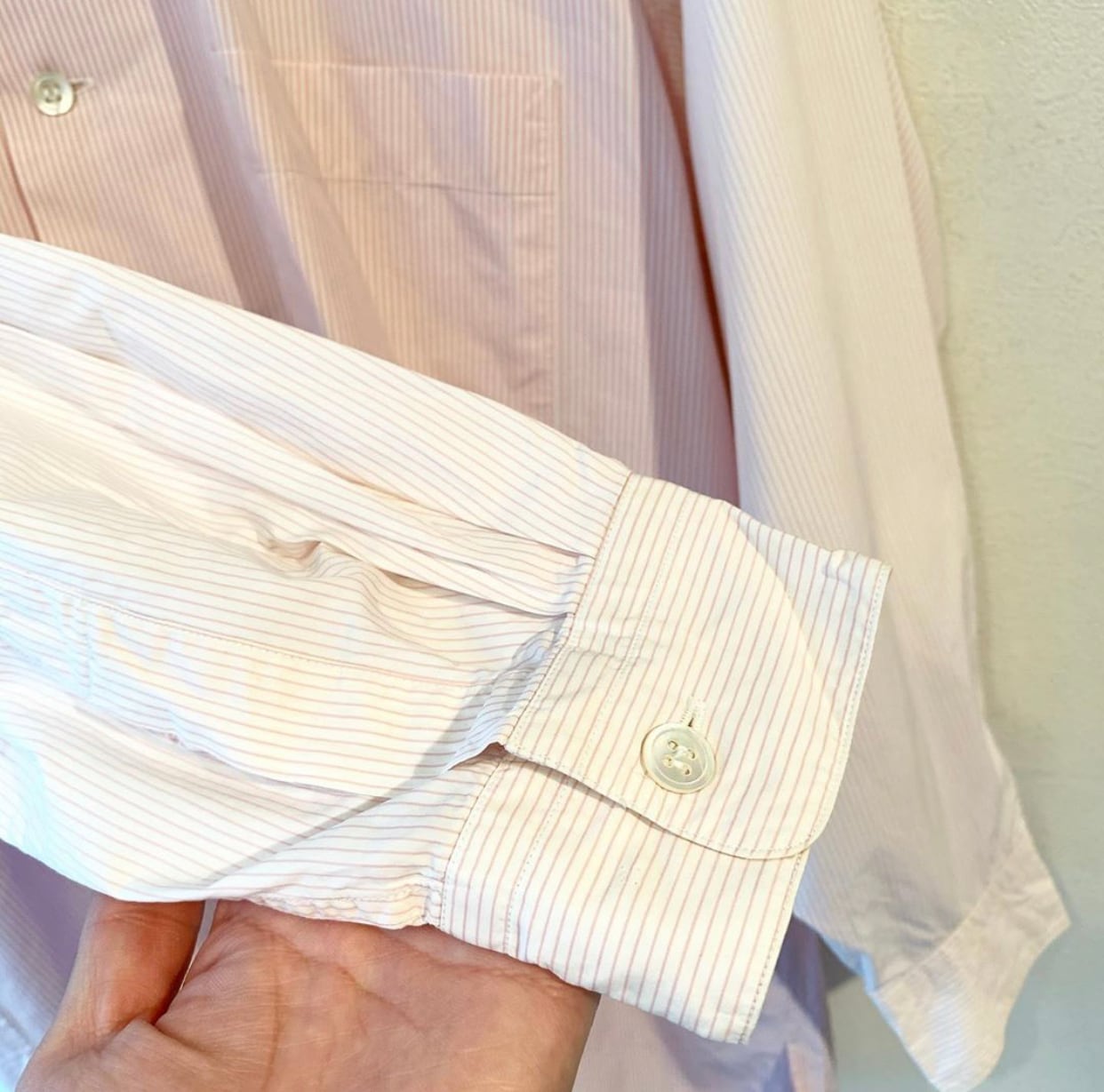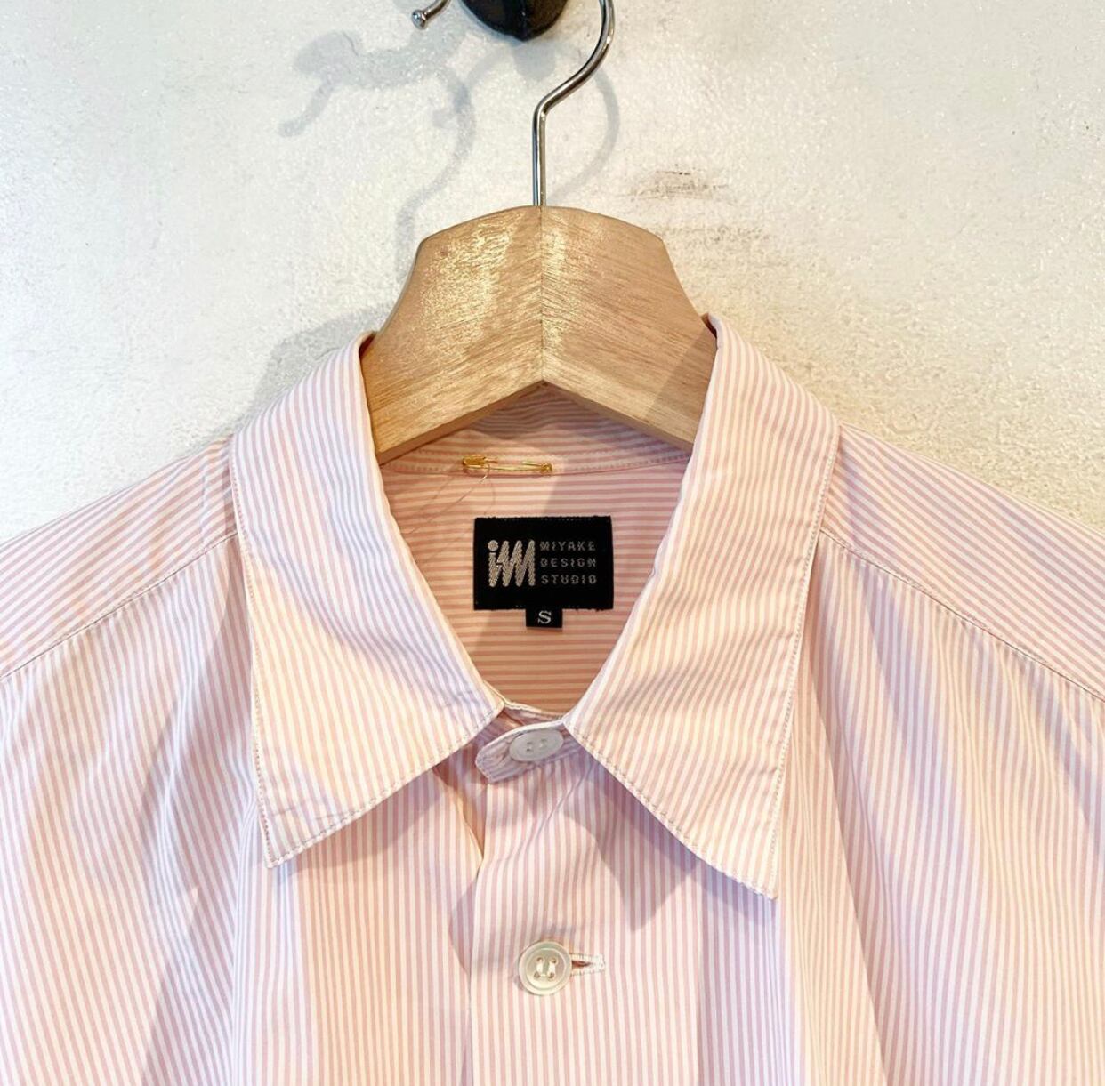 "ISSEY MIYAKE" stripe pattern cotton switch sleeve design shirt