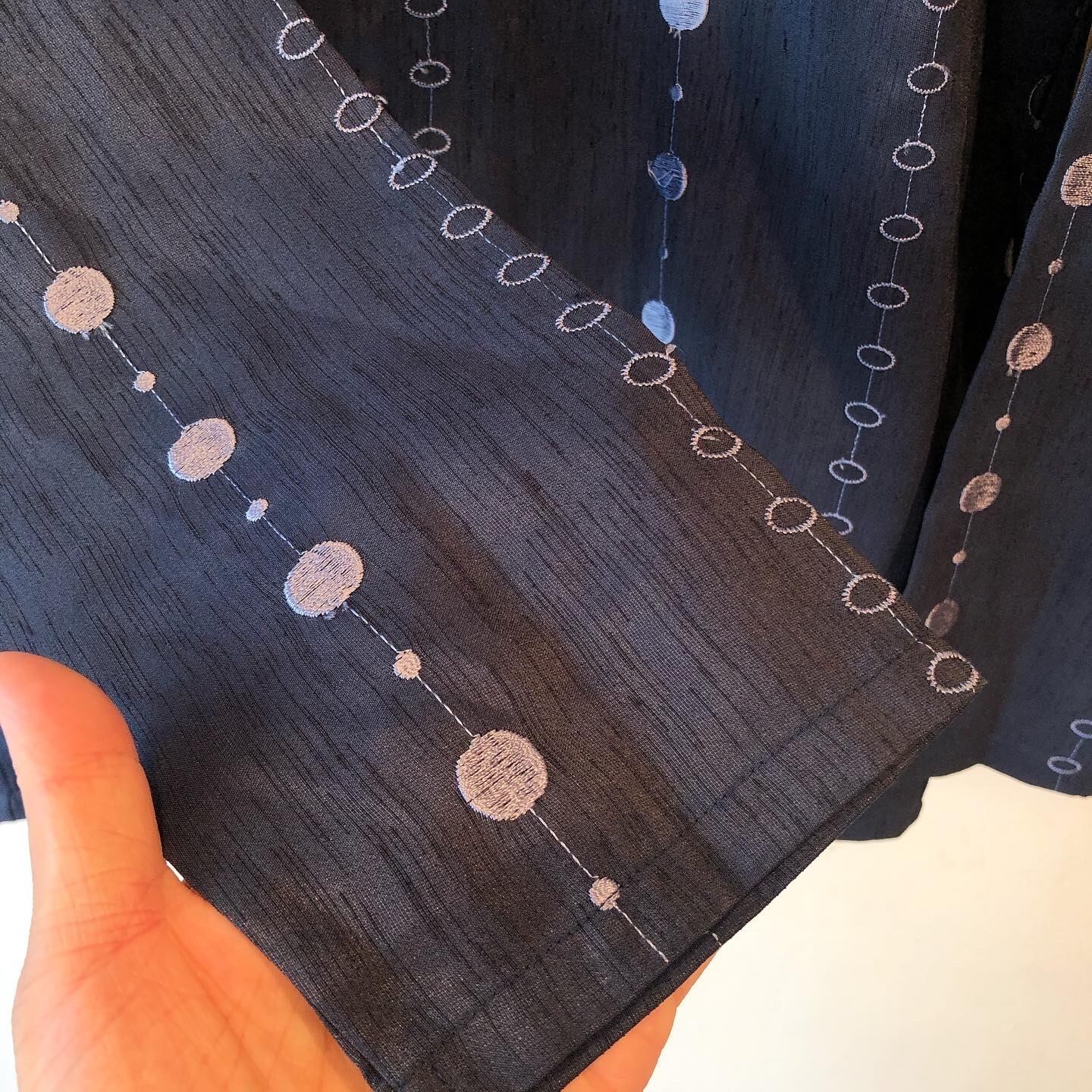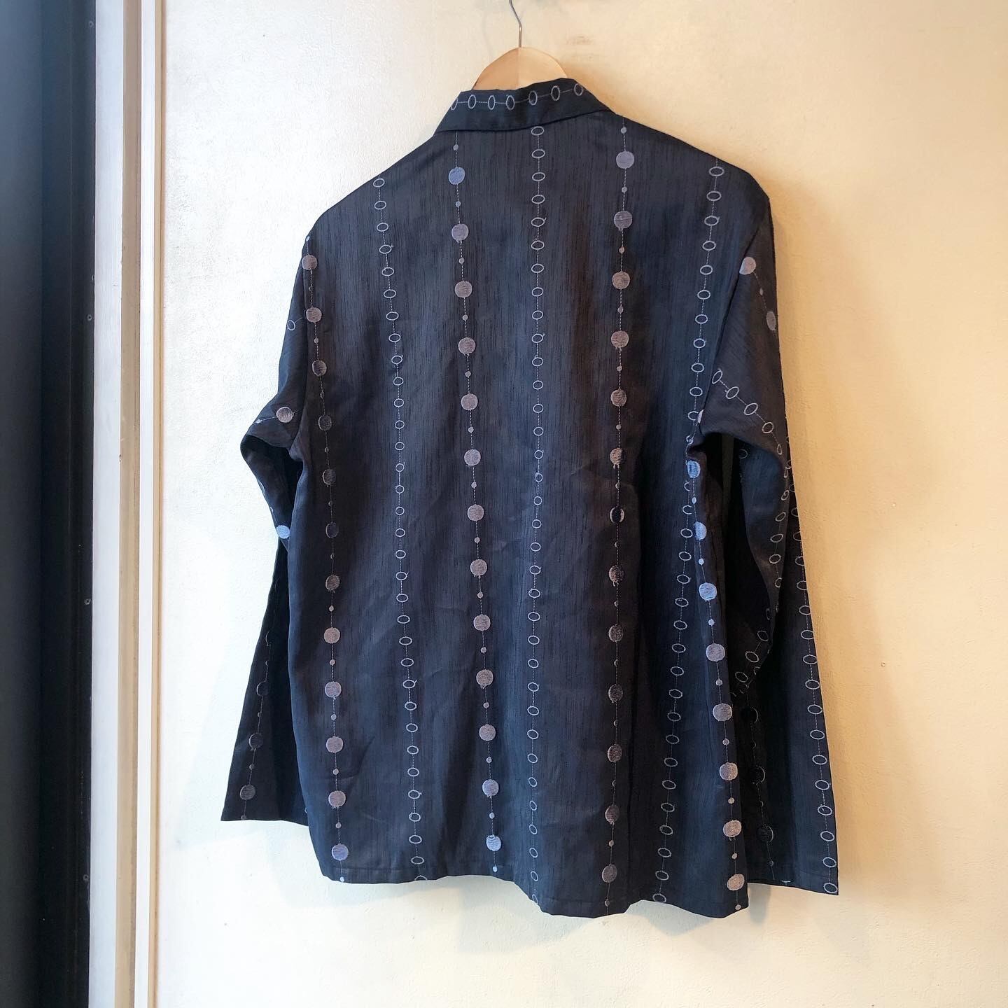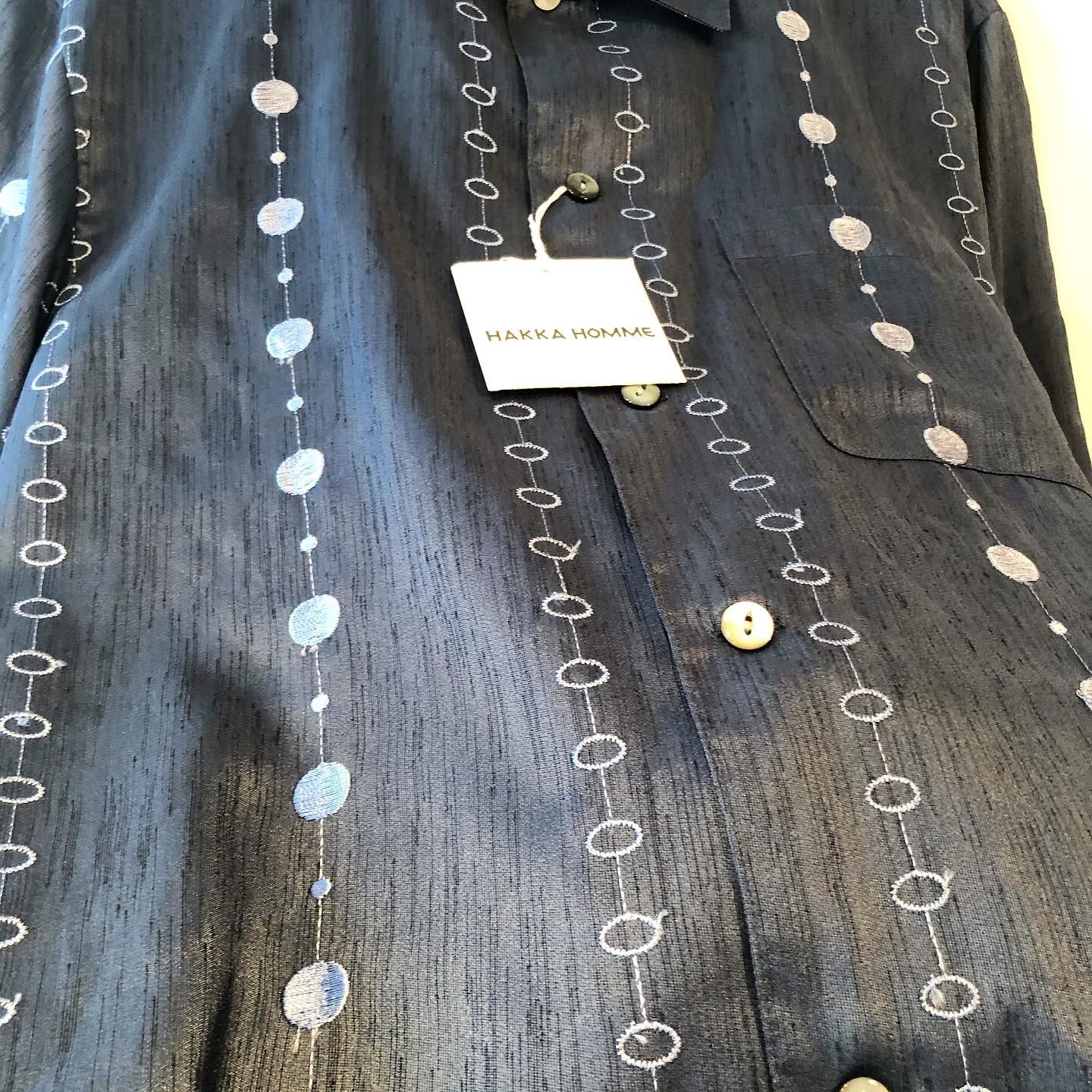 "HAKKA HOMME" unique embroidery poly L/S open collar shirt
