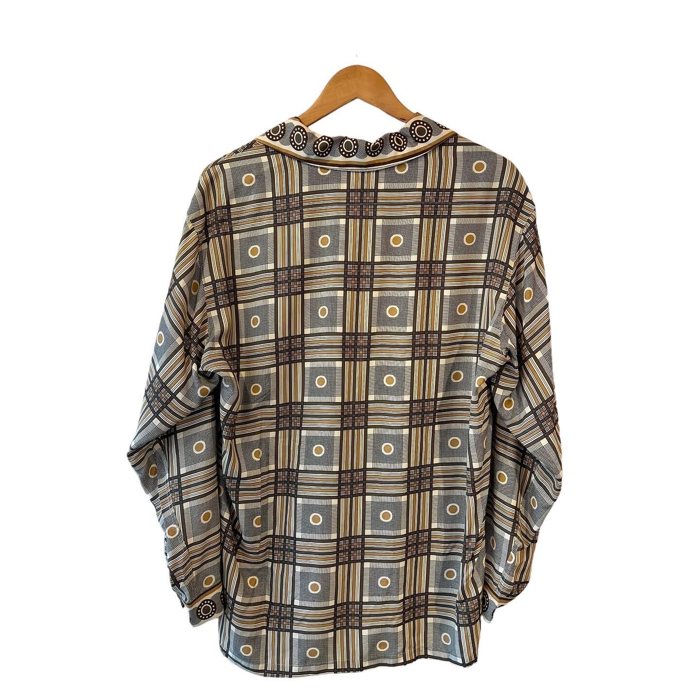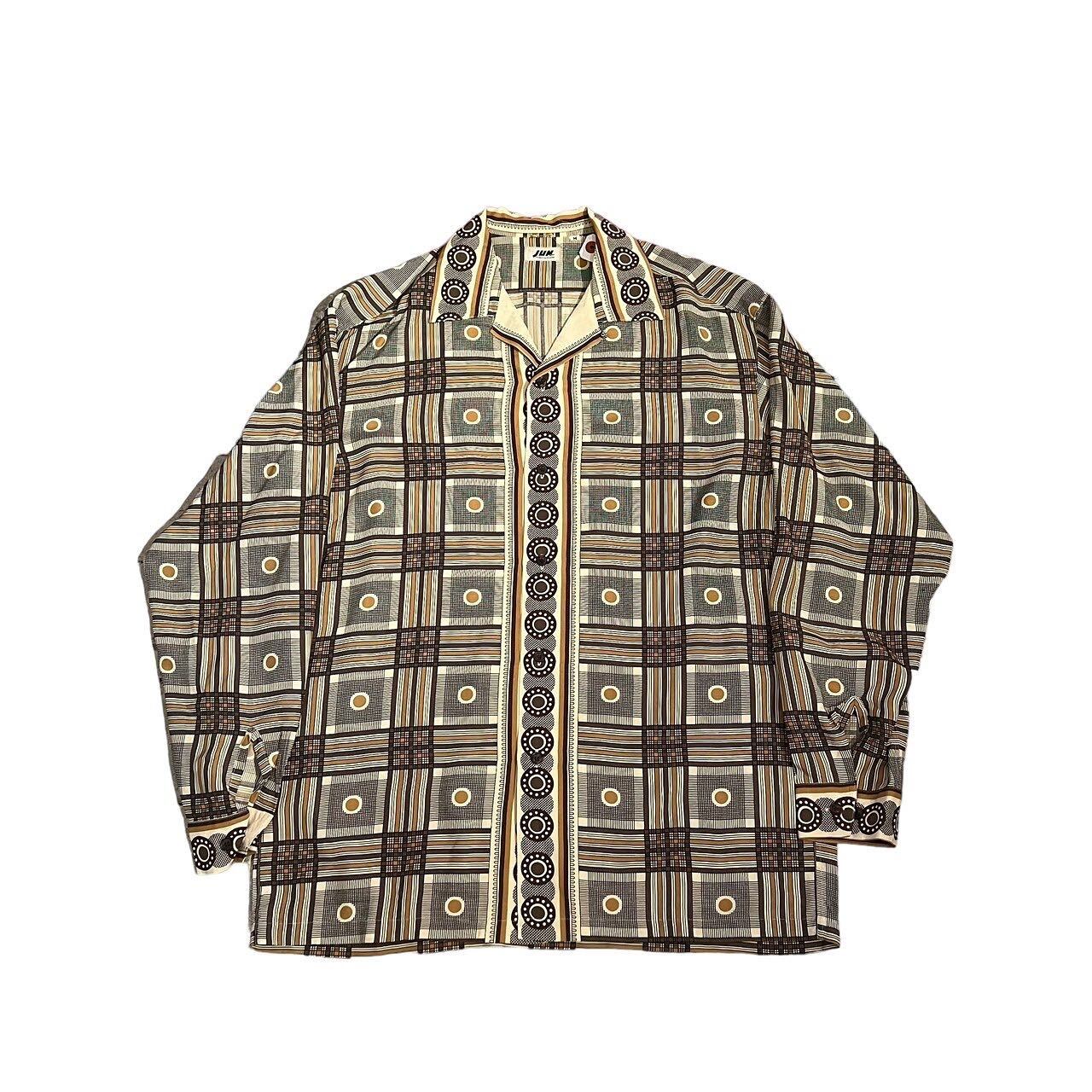 "JUN MEN" art pattern rayon L/S open collar shirt