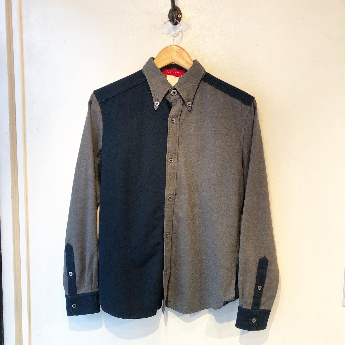 "Y's Red label" 2tone color wool unique gusset design shirt