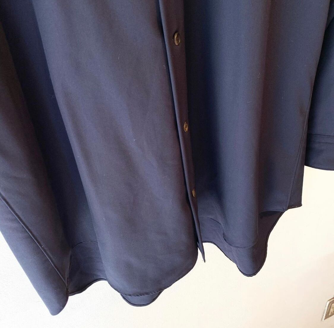 "Y's for men" navy wool gabardine oversize open collar shirt