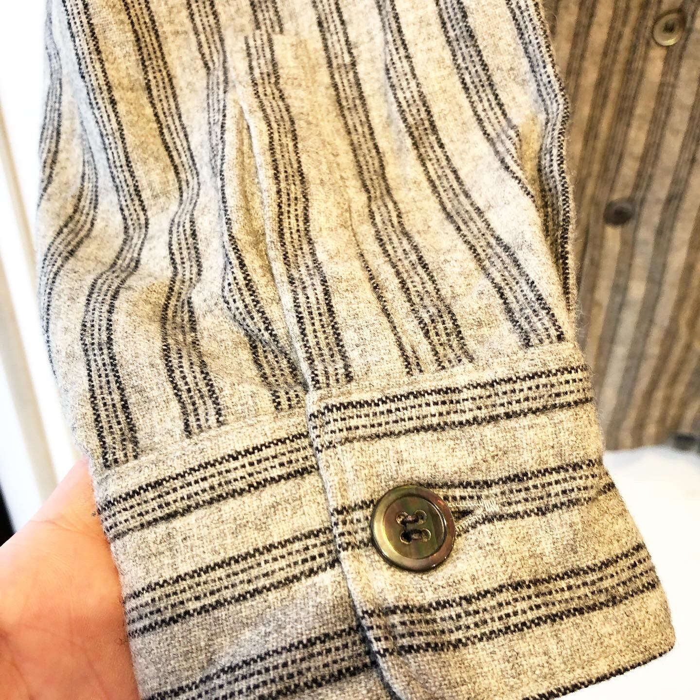 "GARÇONS HOMME" Gray stripe pattern wool L/S open collar shirt