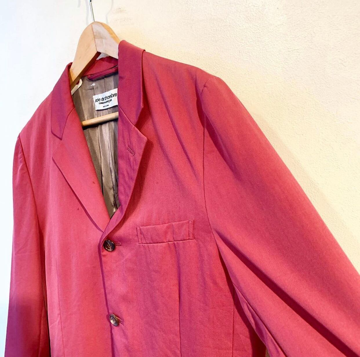 "GARÇONS robe de chambre" rose red wool bleach hem design tailored jacket