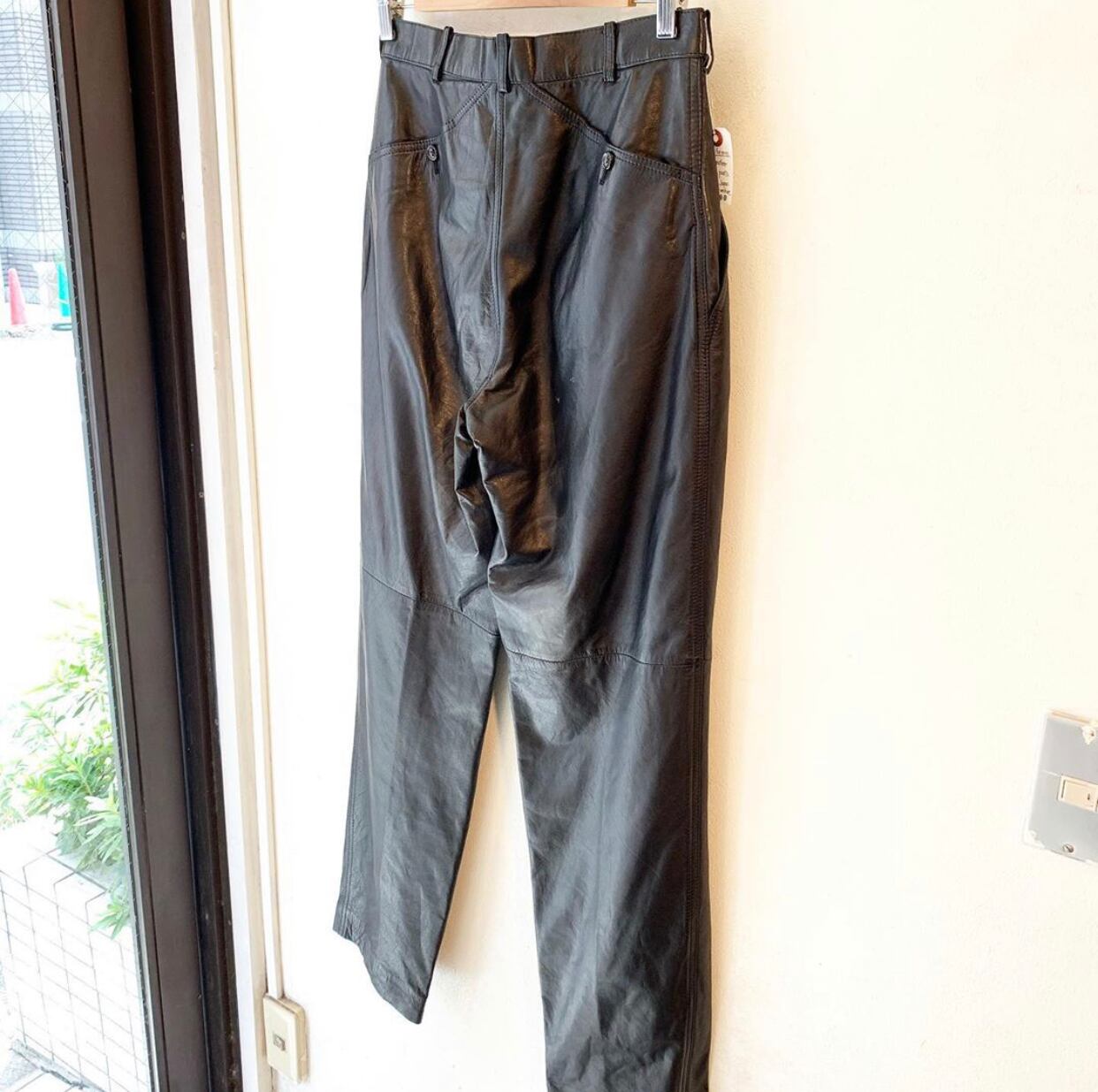 “Y's for men" black lambs leather unique back pocket pants